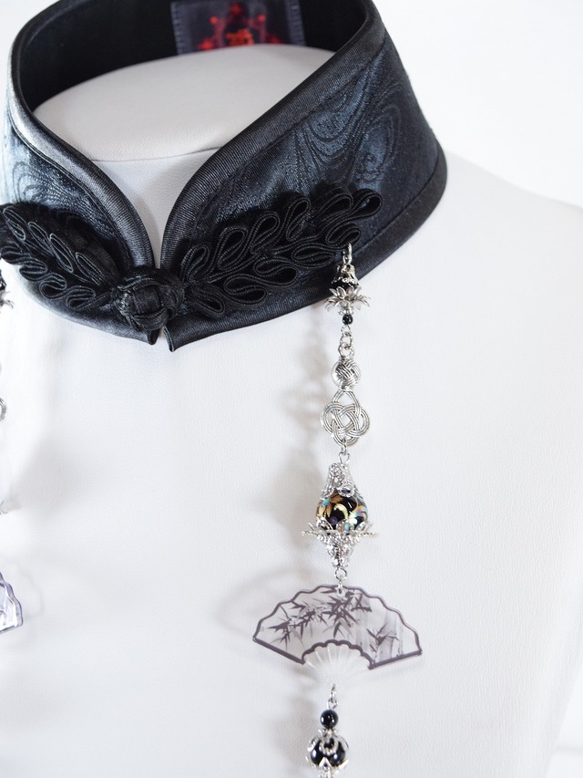 中華襟チョーカー(黒水紋扇)Sサイズ[AR-SC431]