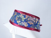 生地:紺生地に金糸と色とりどりの花模様、花円紋様