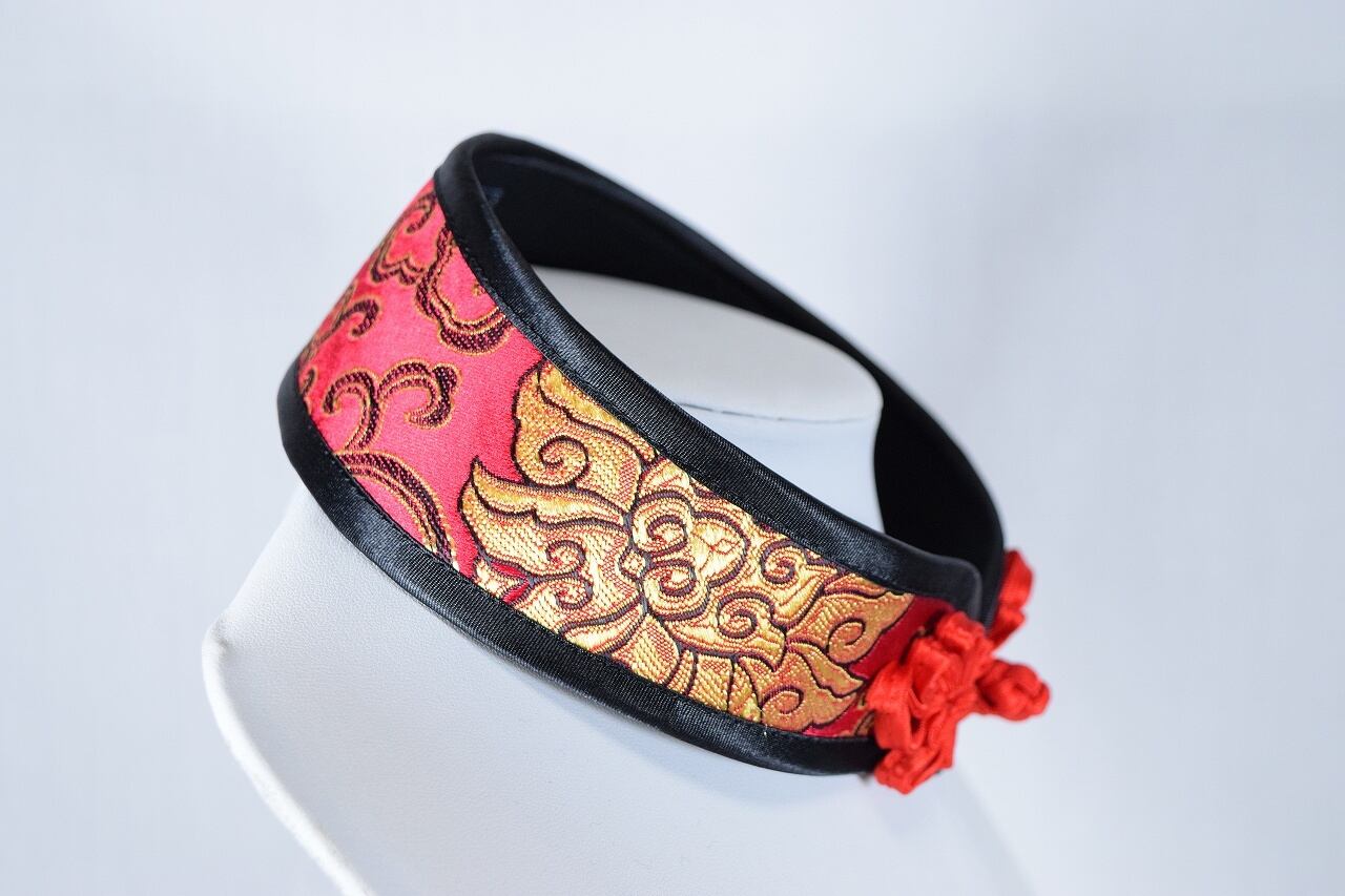 中華襟チョーカー(赤×金蓮)Lサイズ[AR-SC358]