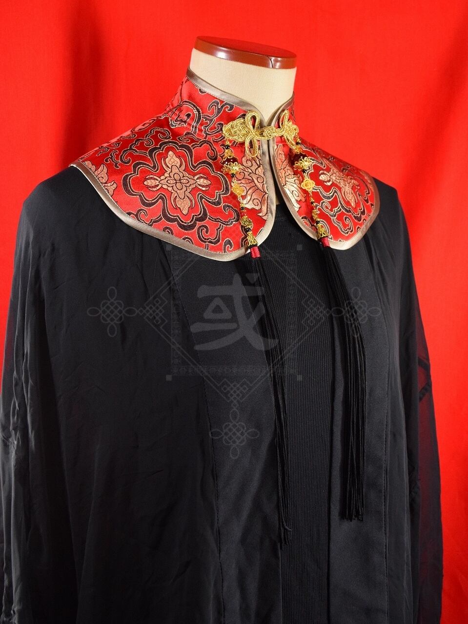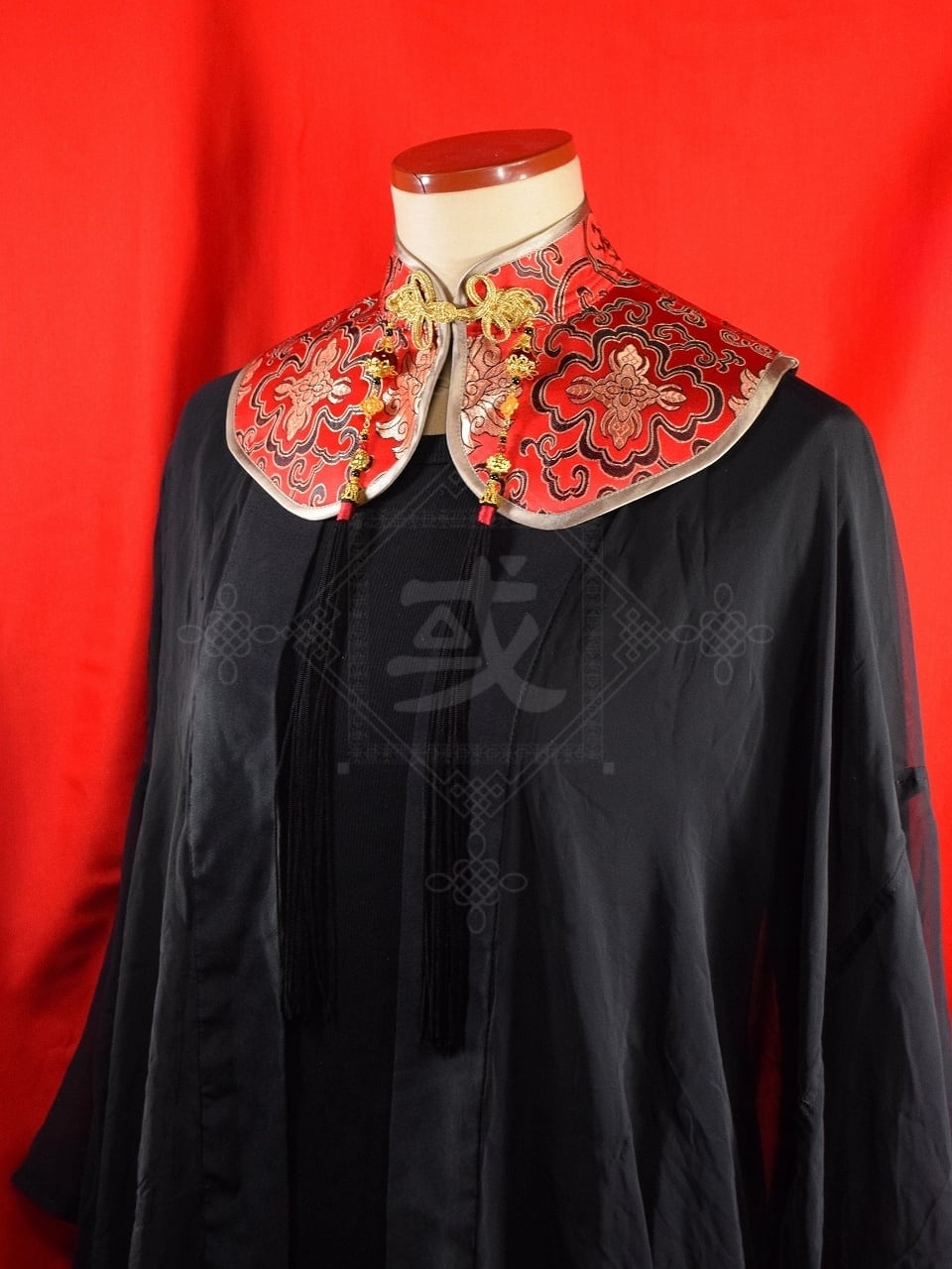 中華付け襟(朱色金蓮)Sサイズ[AR-DC159]