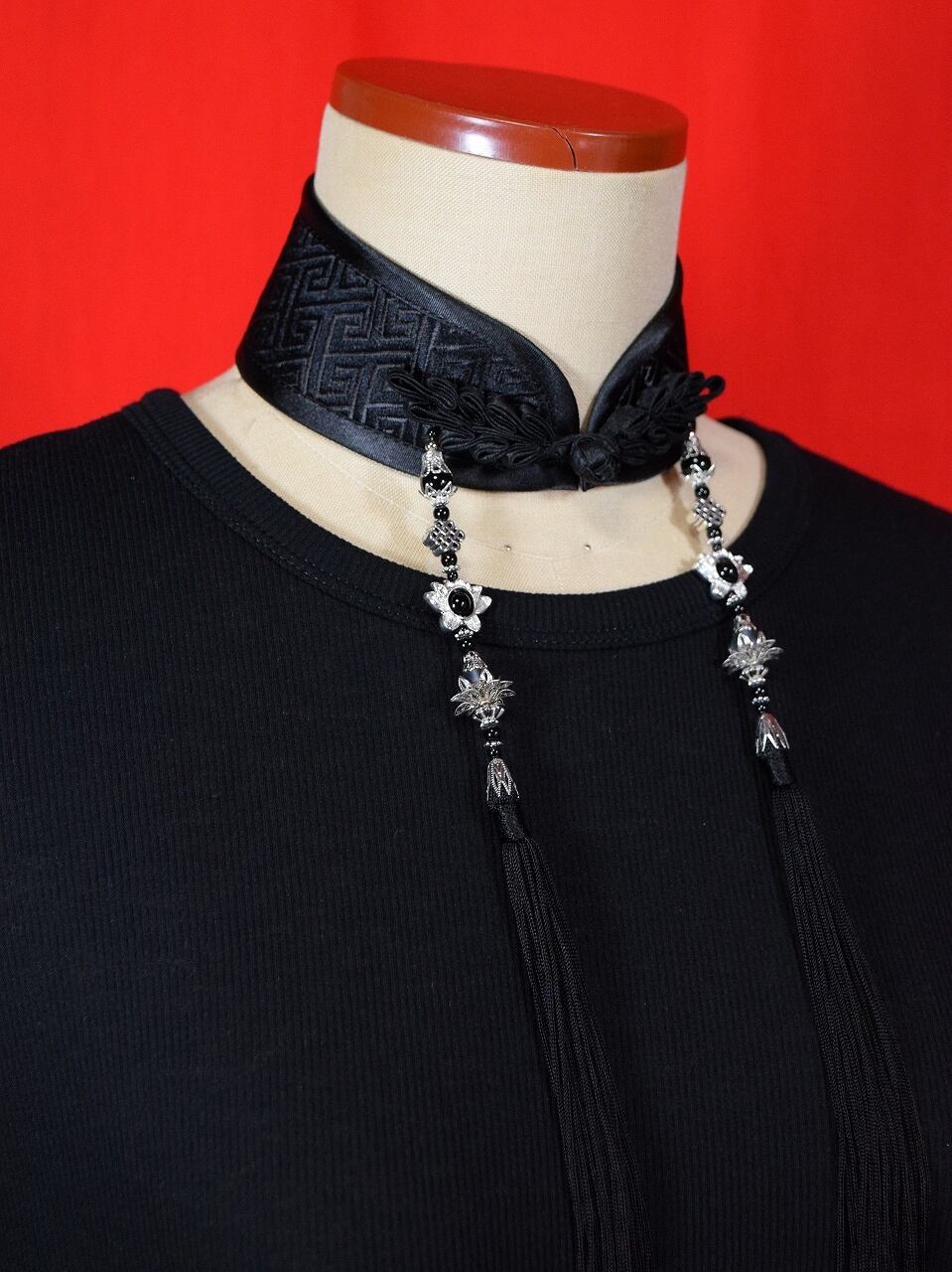 中華襟チョーカー(工字繋ぎ銀蓮)Sサイズ[AR-SC379]