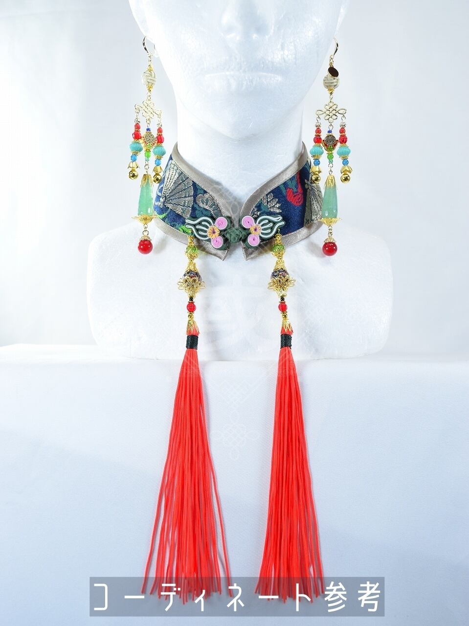 中華襟チョーカー(紺扇)Sサイズ[AR-SC385]