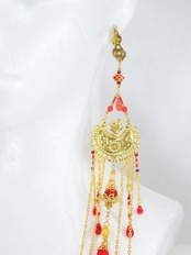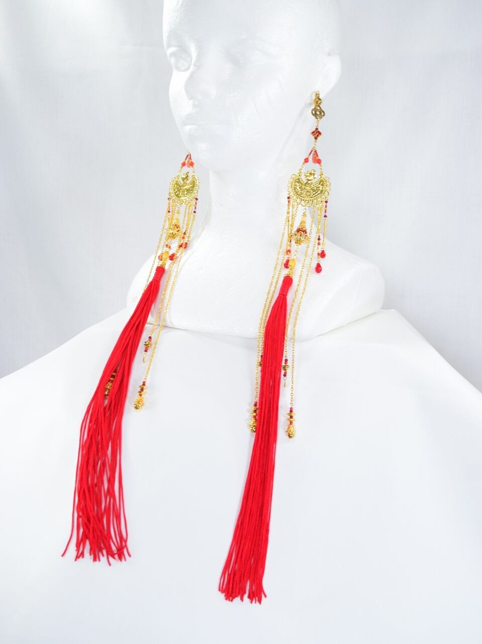 豪奢な装飾と長い赤いタッセル飾りの耳飾りです