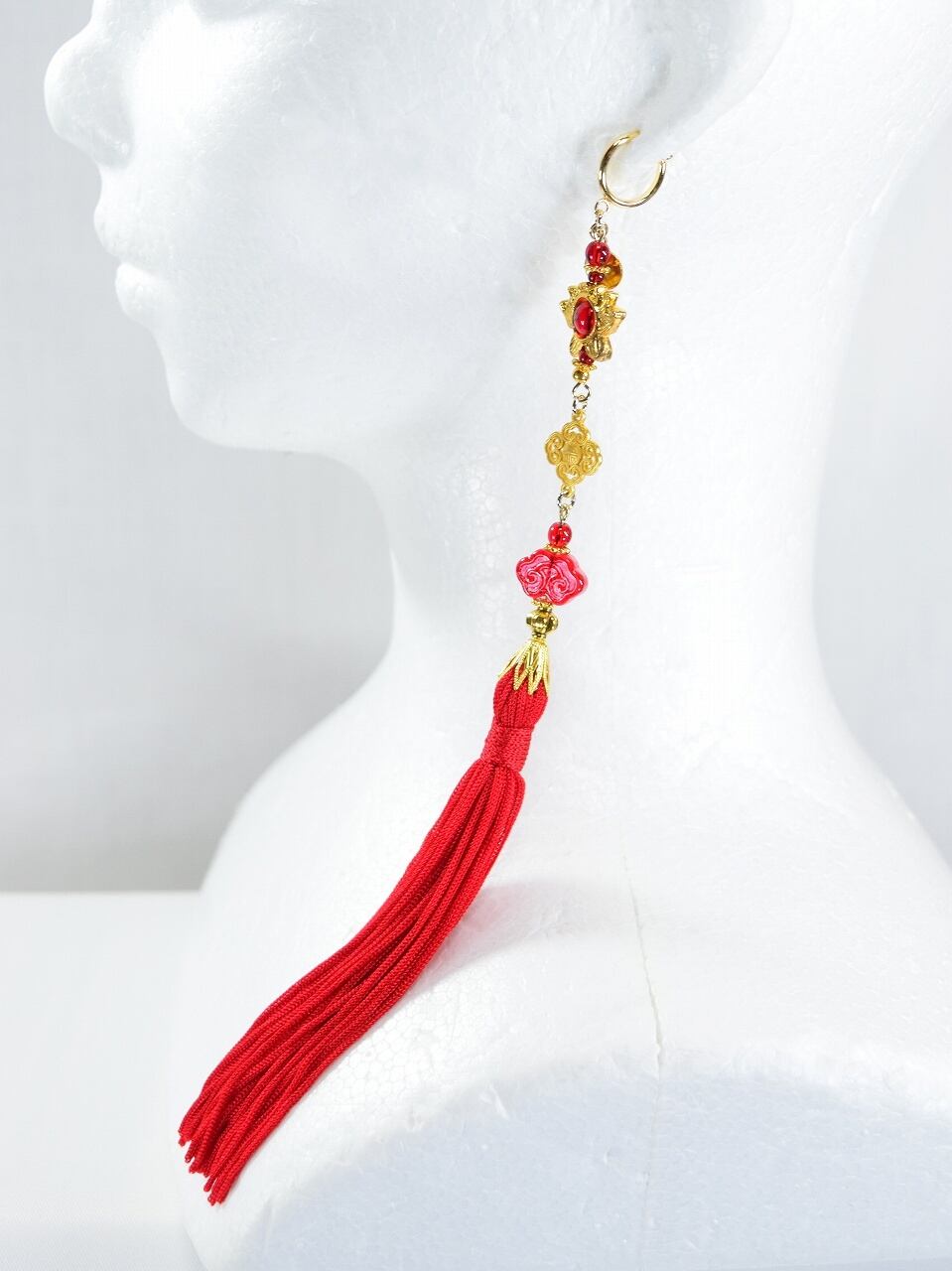 吉祥の紋様と赤い雲と赤い蓮のモチーフ
