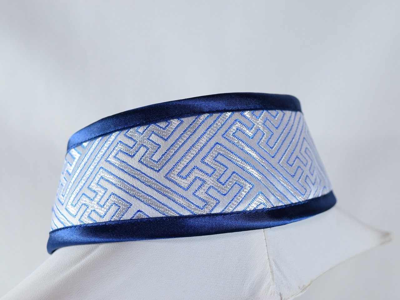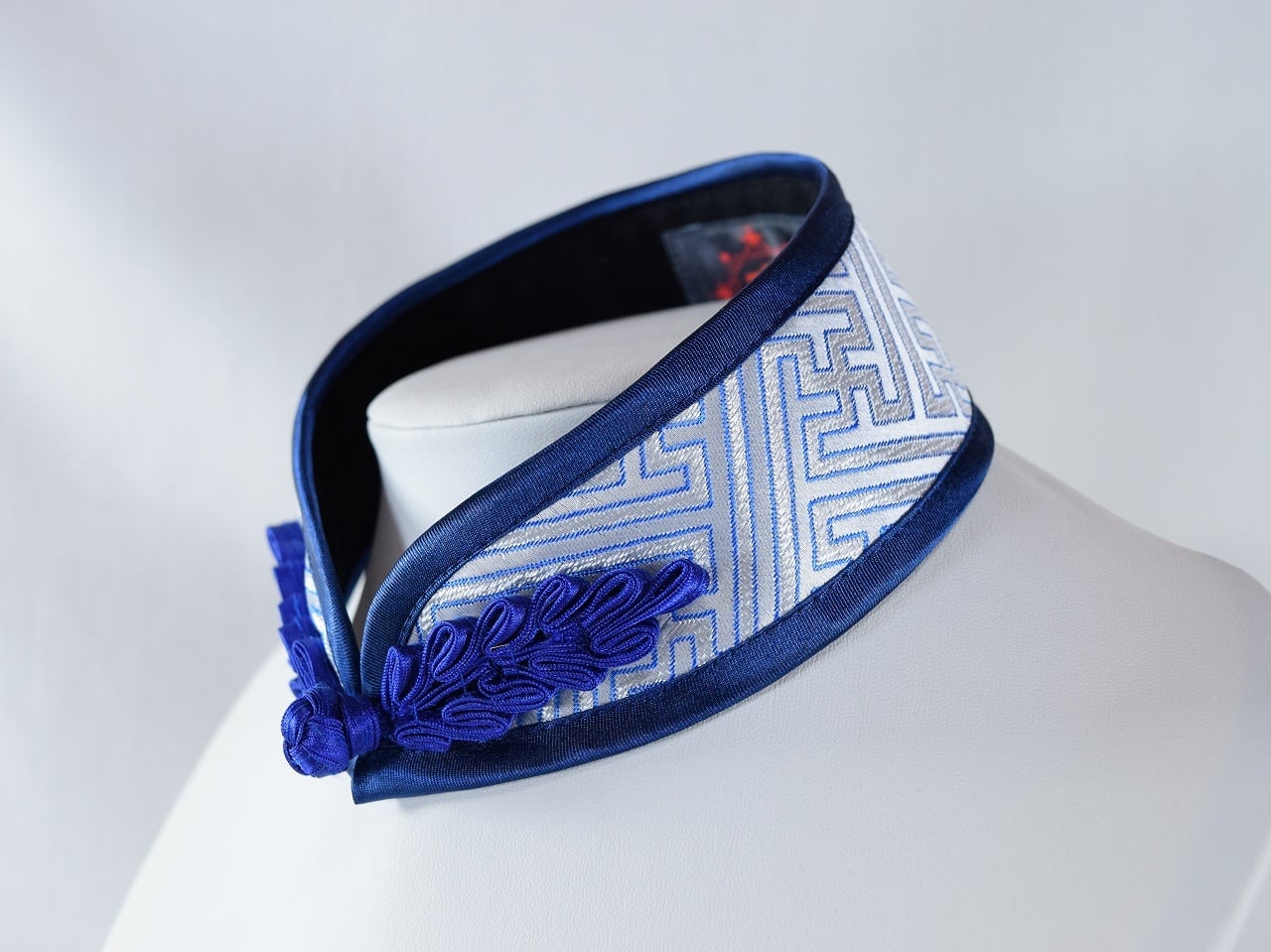 中華襟チョーカー(雷紋繋ぎ紺)Mサイズ[AR-SC401]