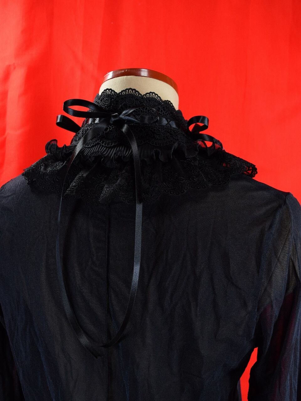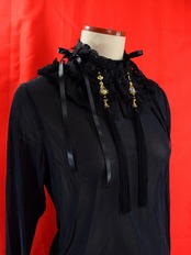 チャイナ釦レースチョーカー(黒薔薇リボン)Lサイズ[AR-LC039]