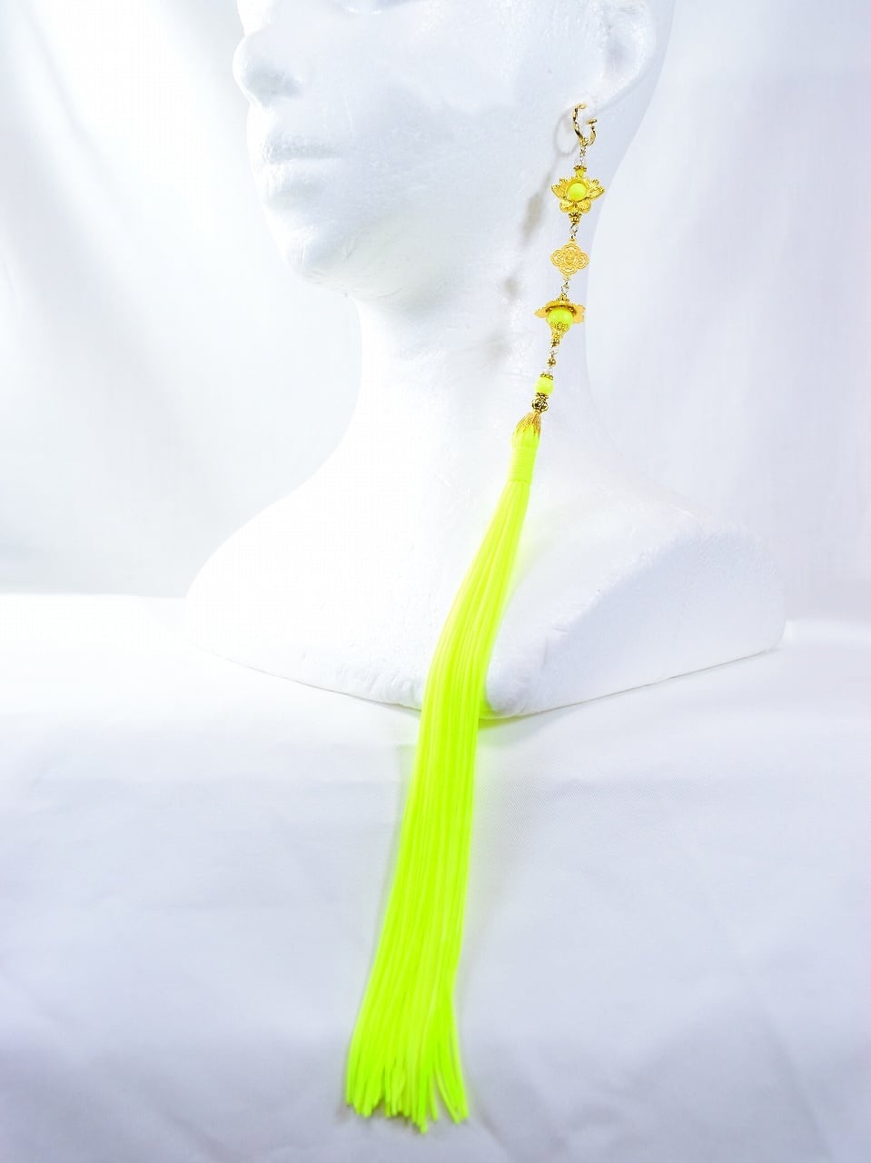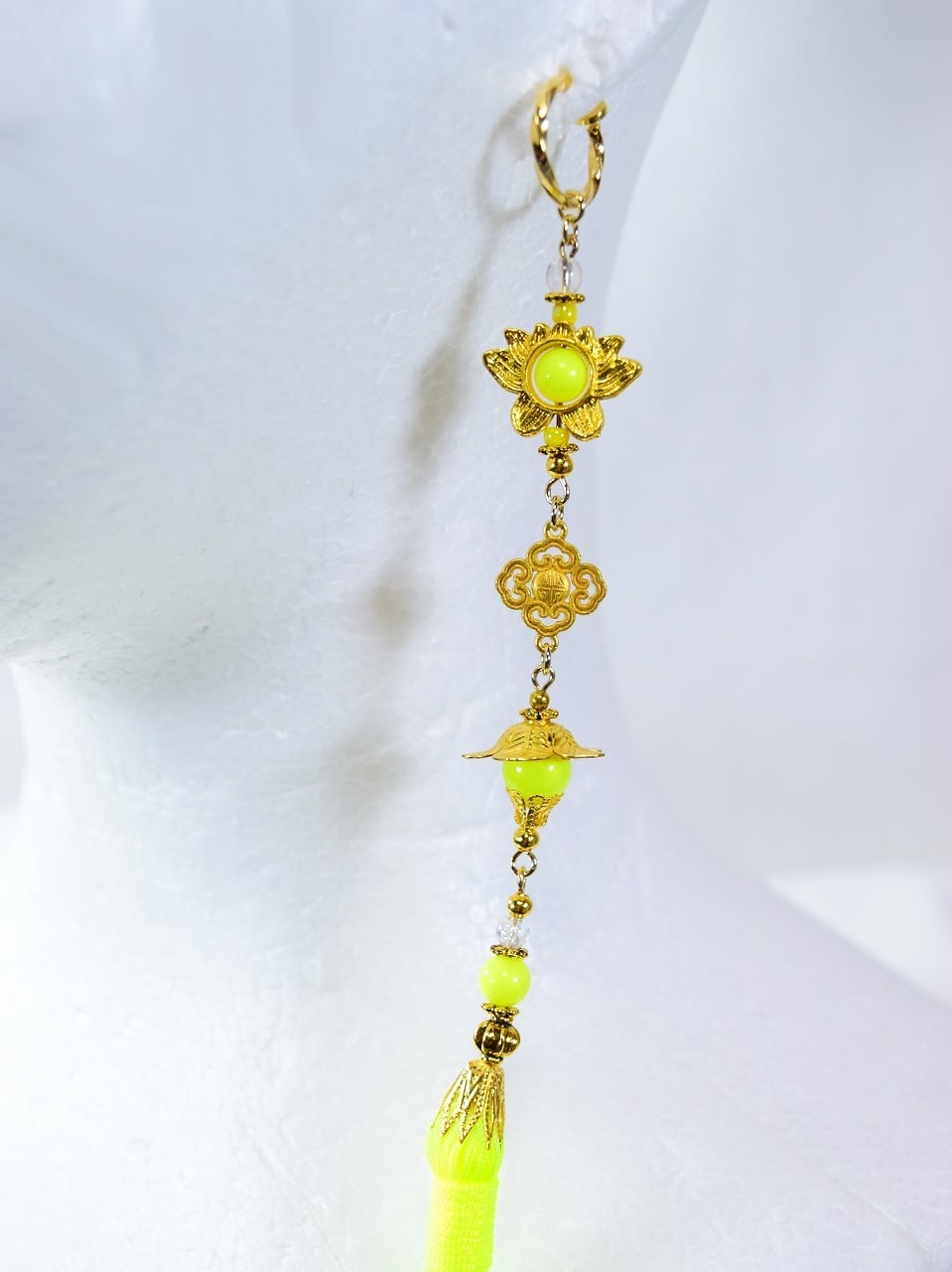 蓮房燈籠耳飾り(ネオンイエロー×ゴールド)[AC-010]