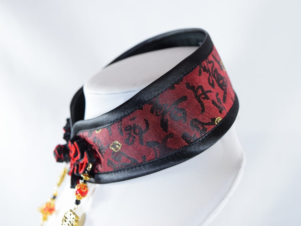 中華襟チョーカー(臙脂文字)Lサイズ[AR-SC412]