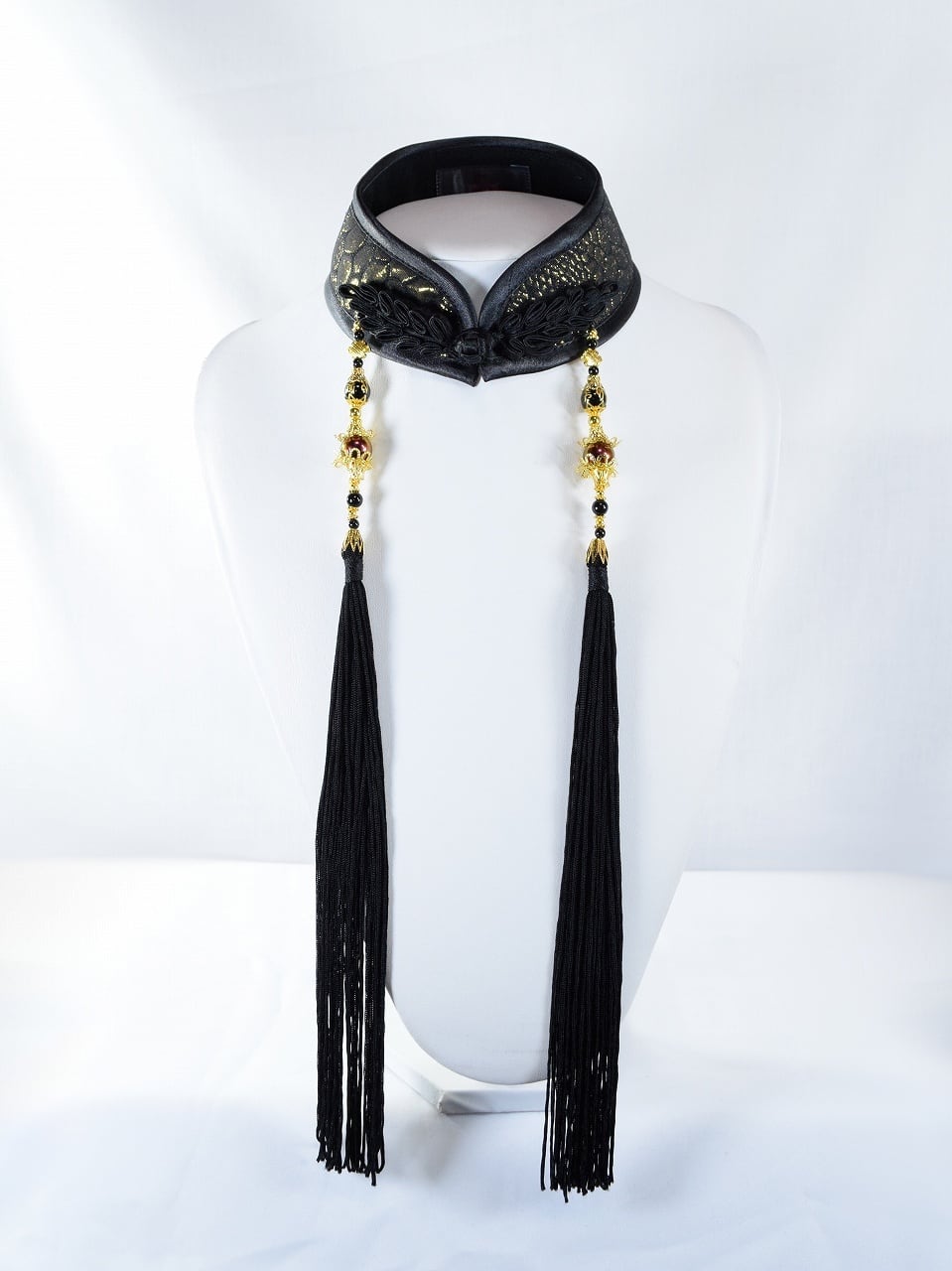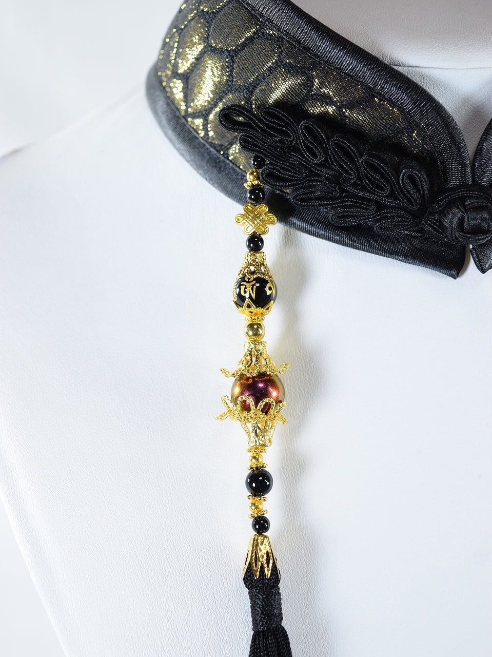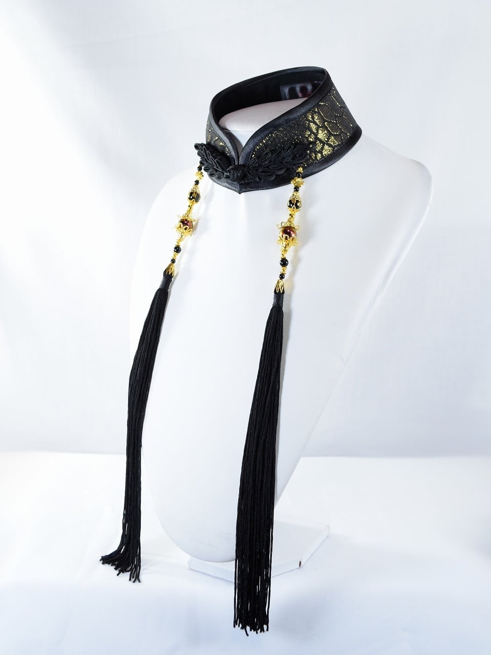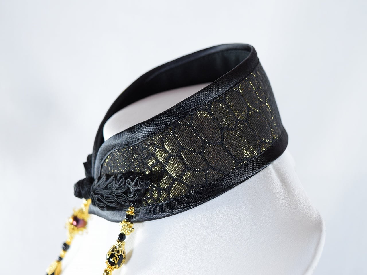 中華襟チョーカー(黒金蛇)Sサイズ[AR-SB063]