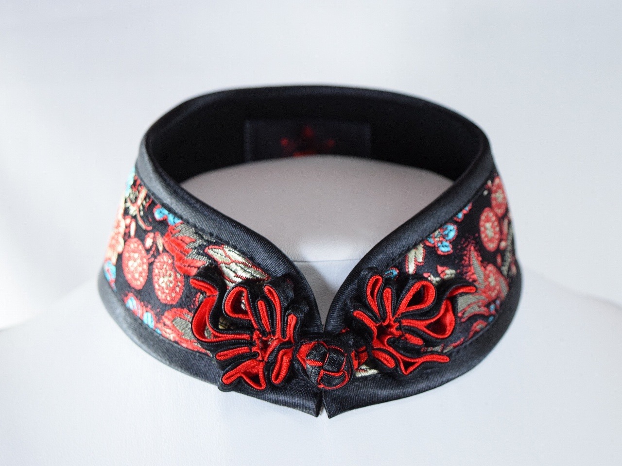 中華襟チョーカー(赤×花浅葱)Sサイズ[AR-SC421]