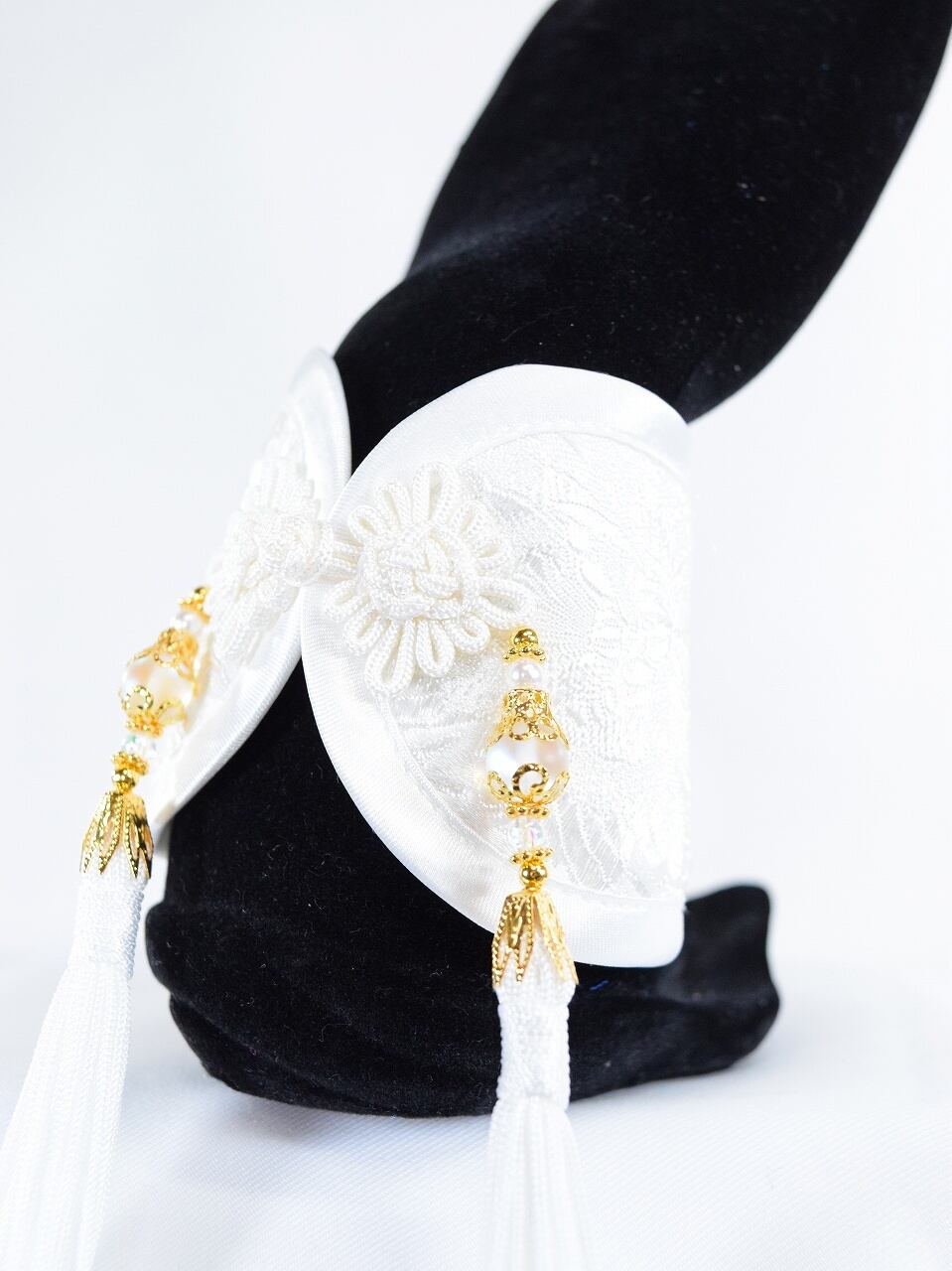 チャイナ釦バングル(白菊花)Sサイズ[AR-BWD036]