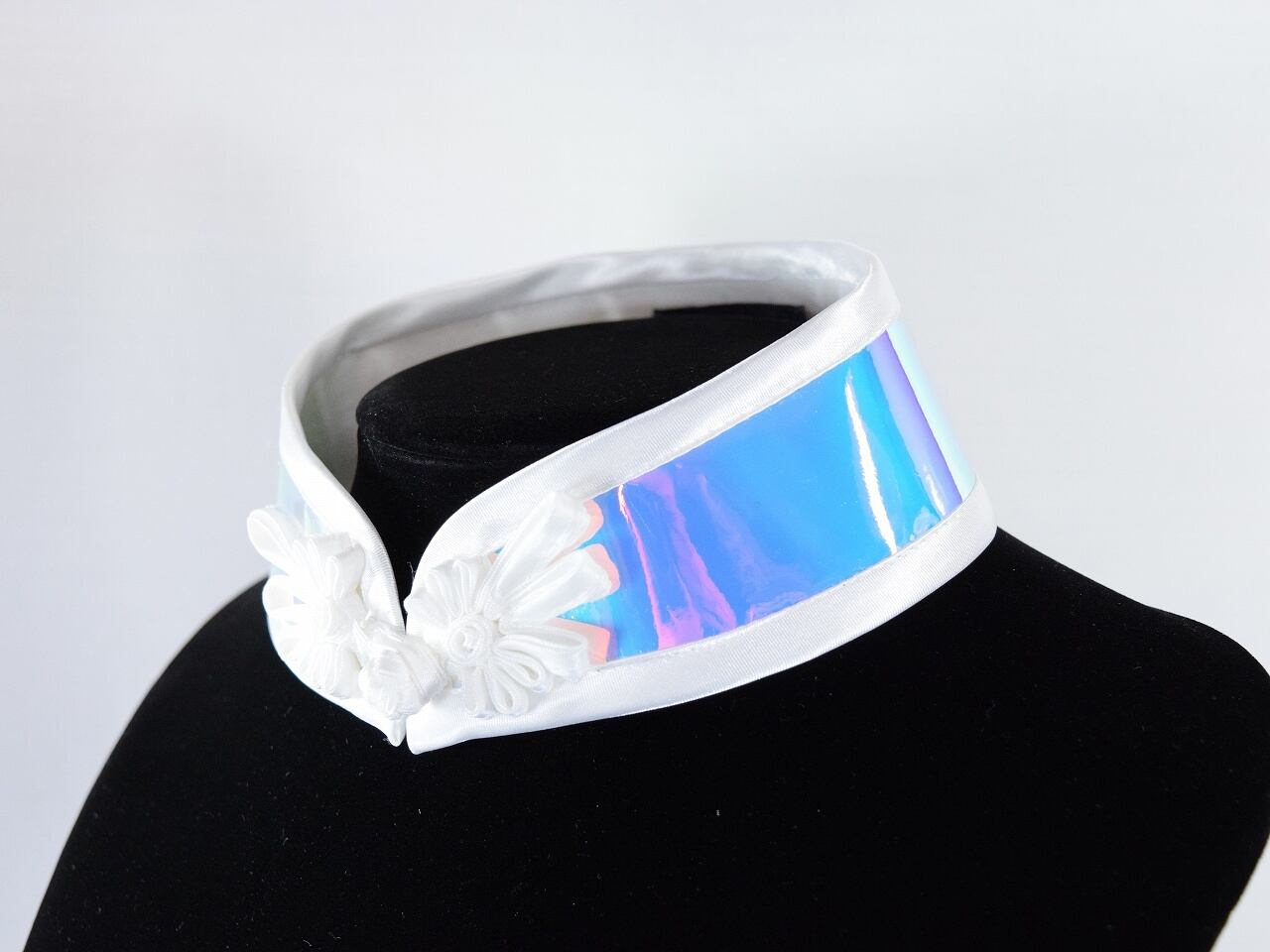 中華襟チョーカー(オーロラ×ホワイト)Mサイズ[AR-FL045]