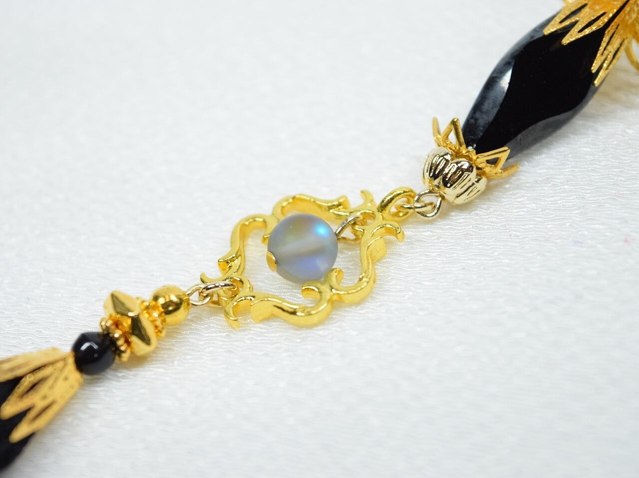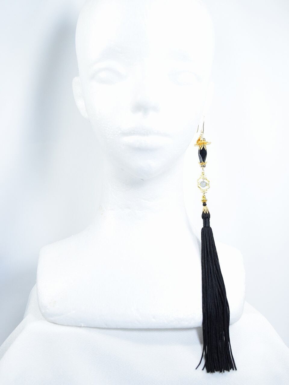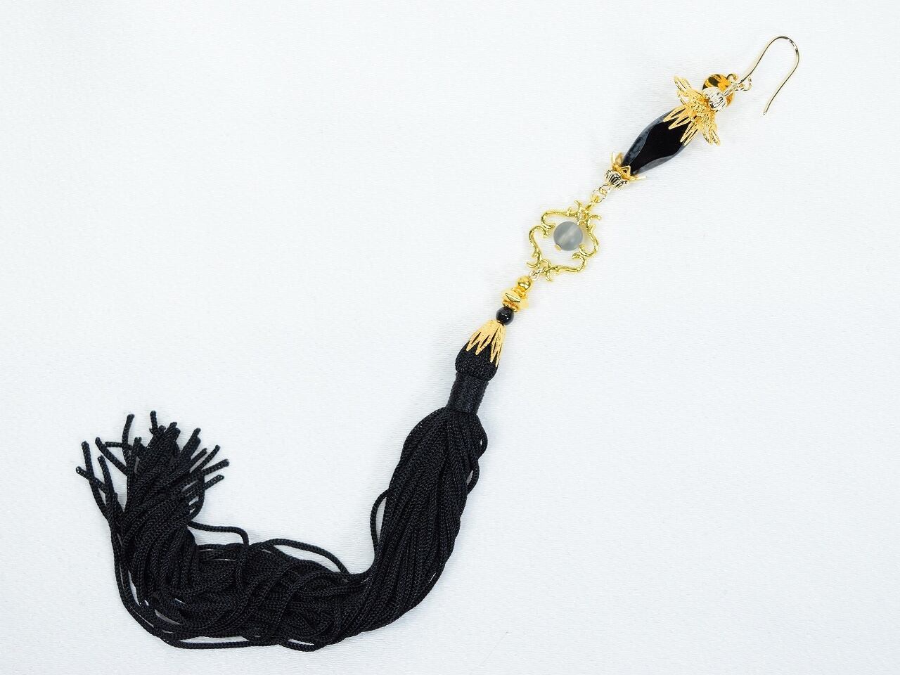 宵の暗い燈籠の光をイメージしたタッセル付きの片耳用耳飾り