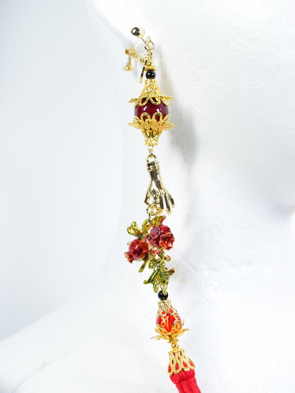 柘榴と房の耳飾り(赤)setイヤリング[AC-019]