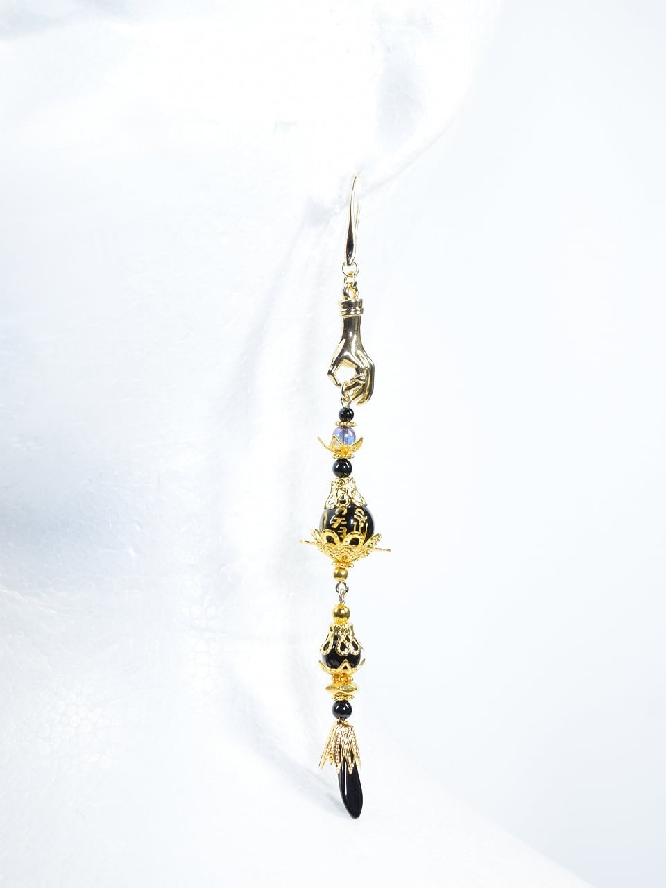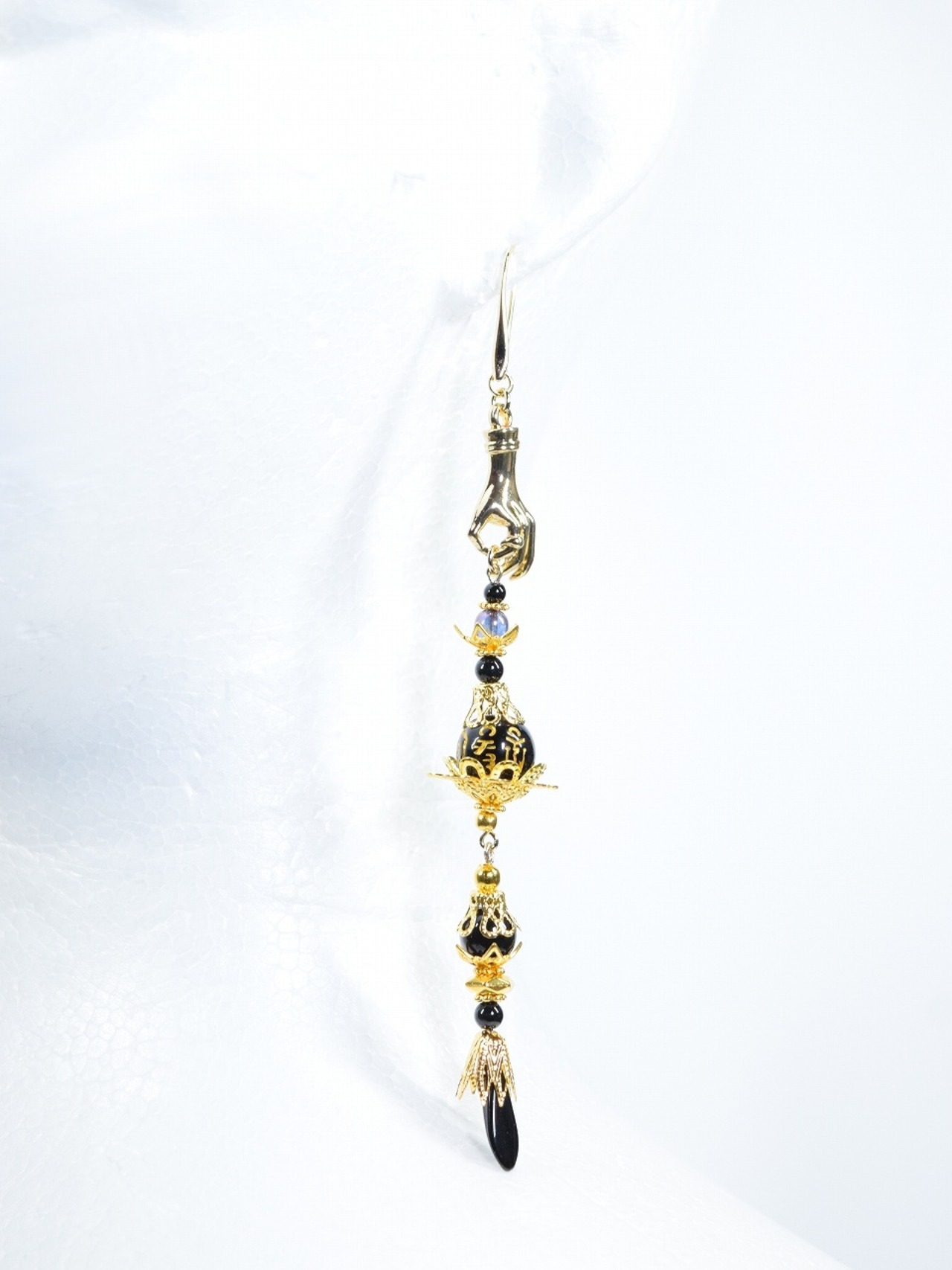 ハンドモチーフと梵字のビーズの耳飾り