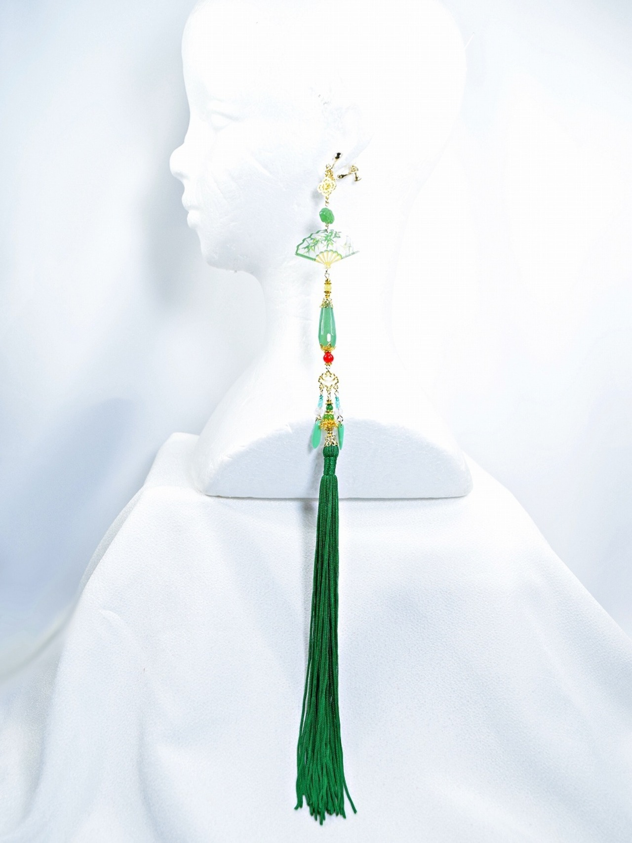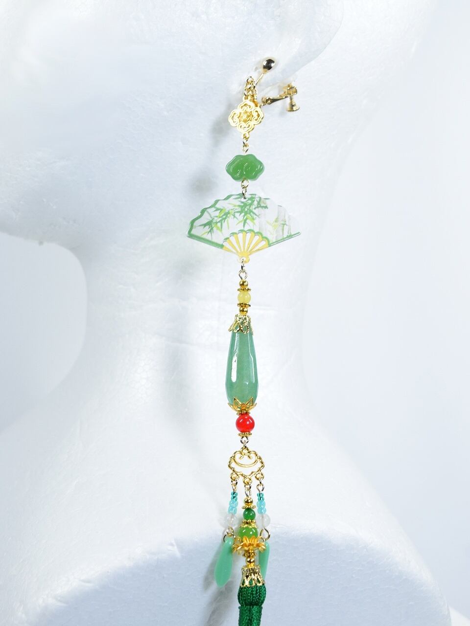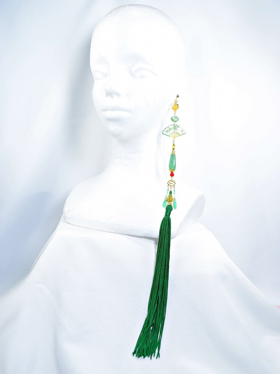 扇と雲の耳飾り(緑)イヤリング[AC-029]