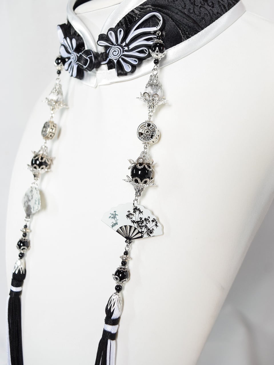 中華襟チョーカー(白黒扇子)Sサイズ[AR-SC435]