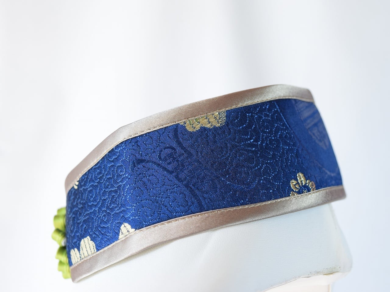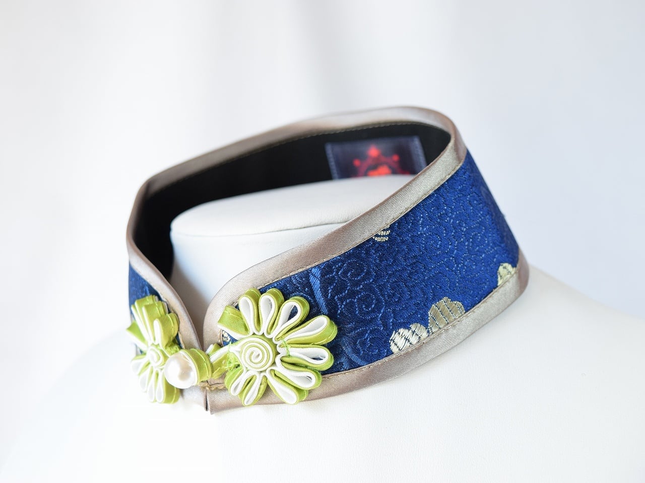 中華襟チョーカー(紺緑菊花)Mサイズ[AR-SC452]