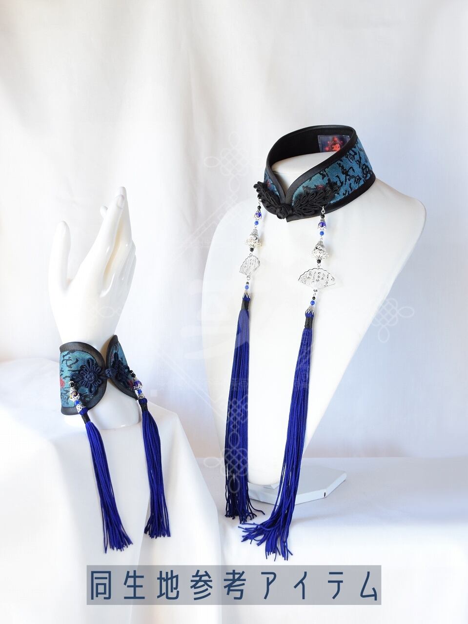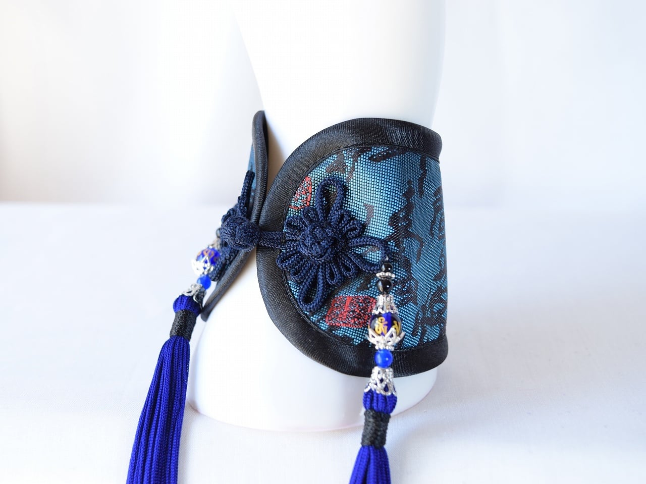 装飾:梵字の石と黒と青の石ビーズ、新色の装飾、青紺のタッセル、