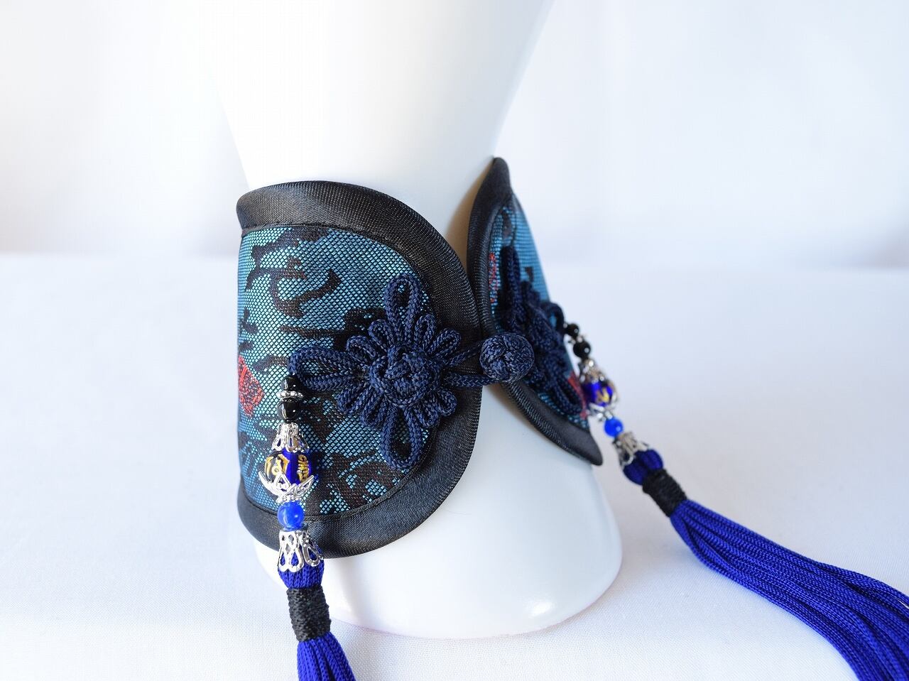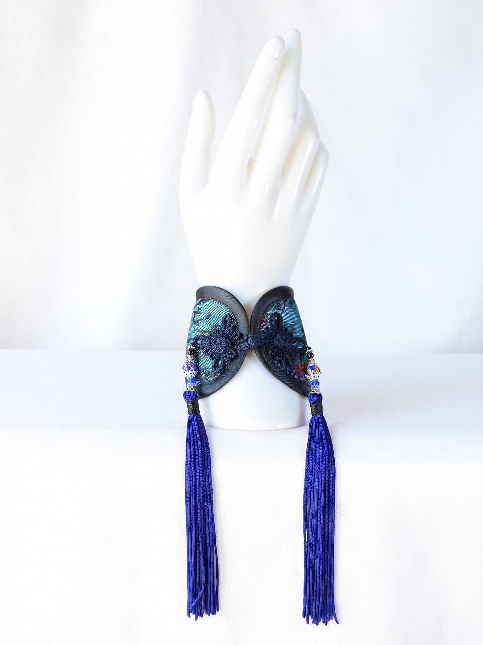 チャイナ釦バングル(文字紺)Mサイズ[AR-BWD039]