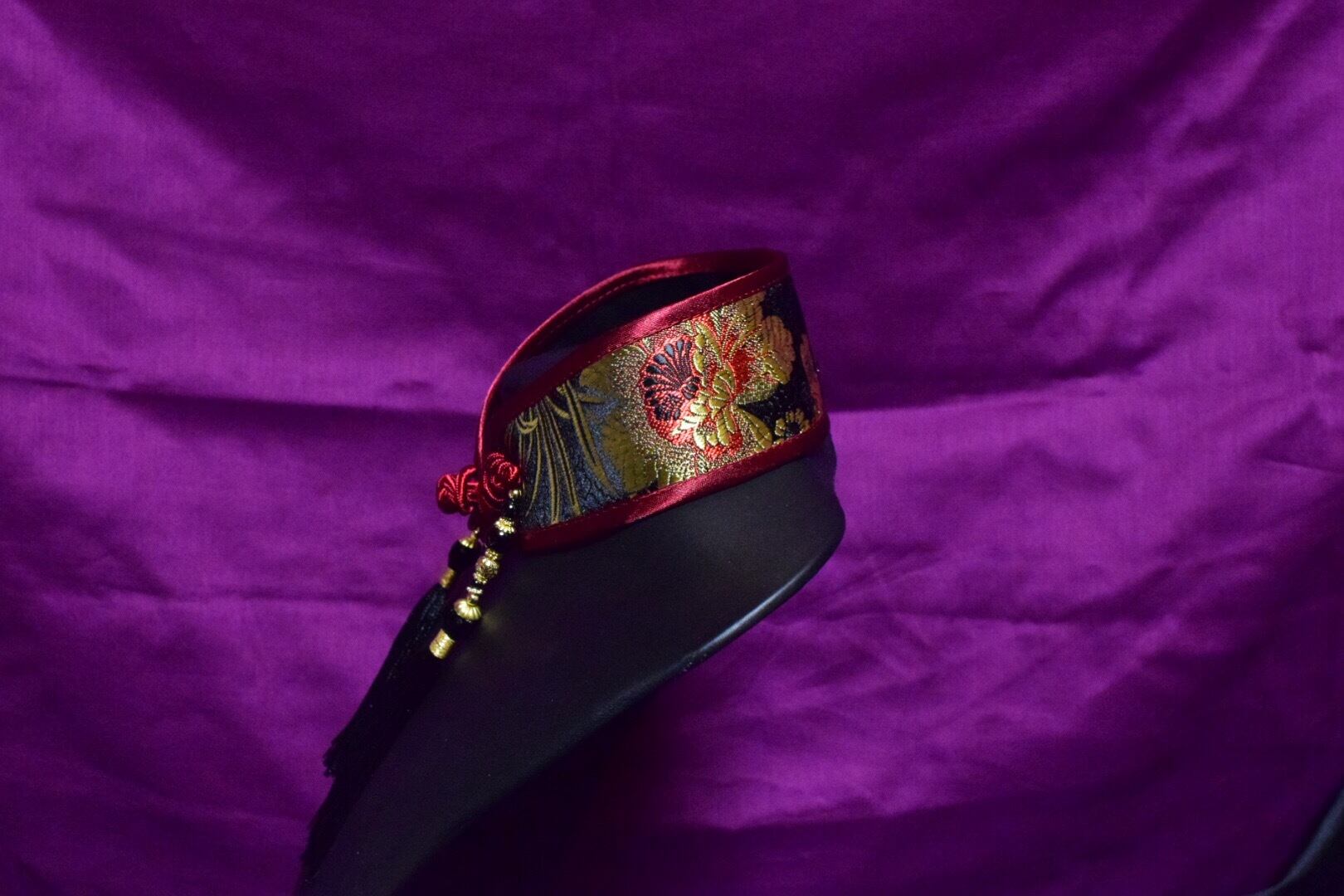 生地:黒字に中華模様のモノグラムと金と赤の華ブロケード