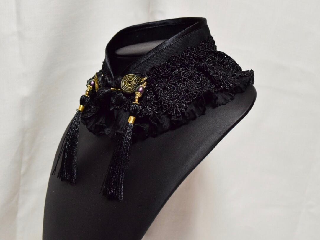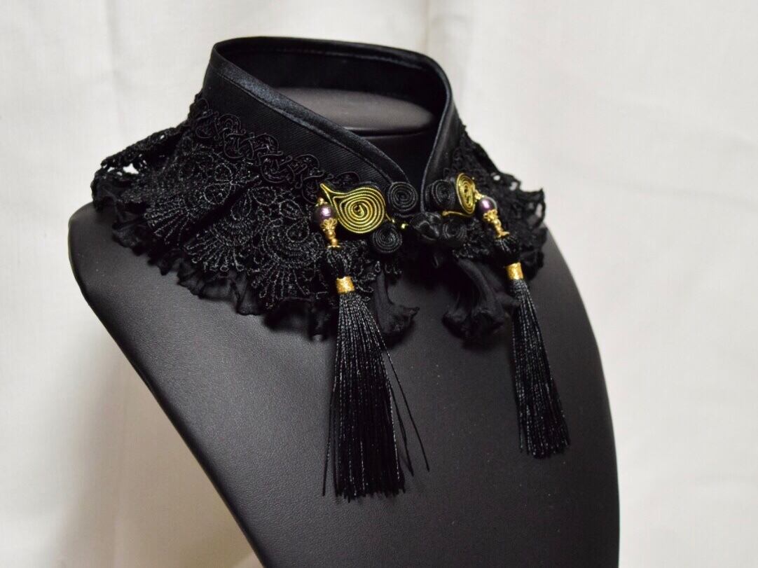 レース中華襟チョーカー(黒)Sサイズ[AR-LC003]