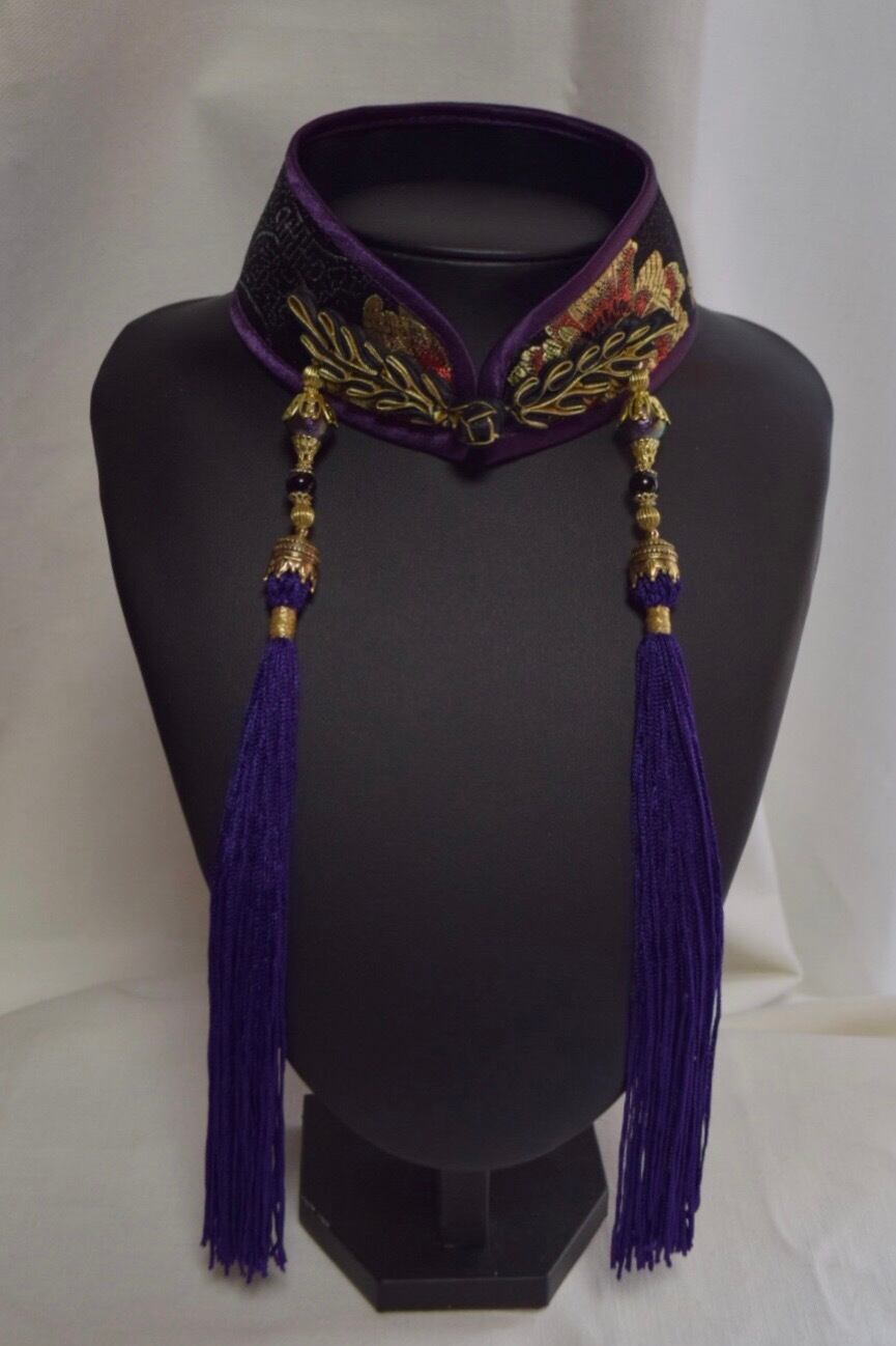 中華襟チョーカー(黒紫)Sサイズ[AR-SC028]