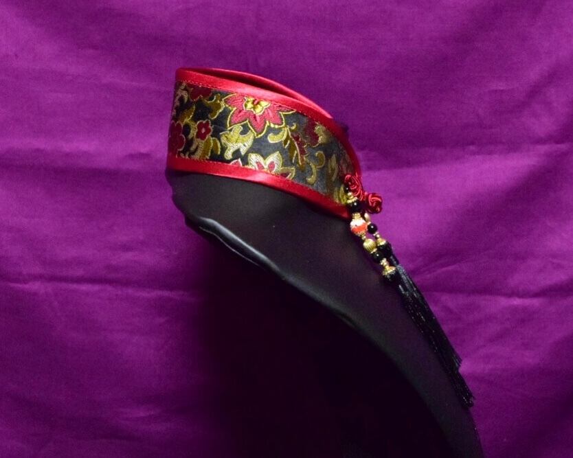 生地:黒字に中華模様の金と赤の華模様チャイナ生地