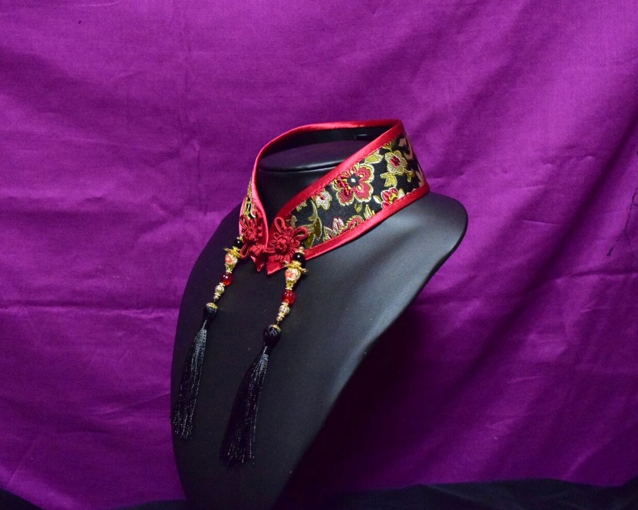 中華襟チョーカー(黒)Mサイズ[AR-SC032]