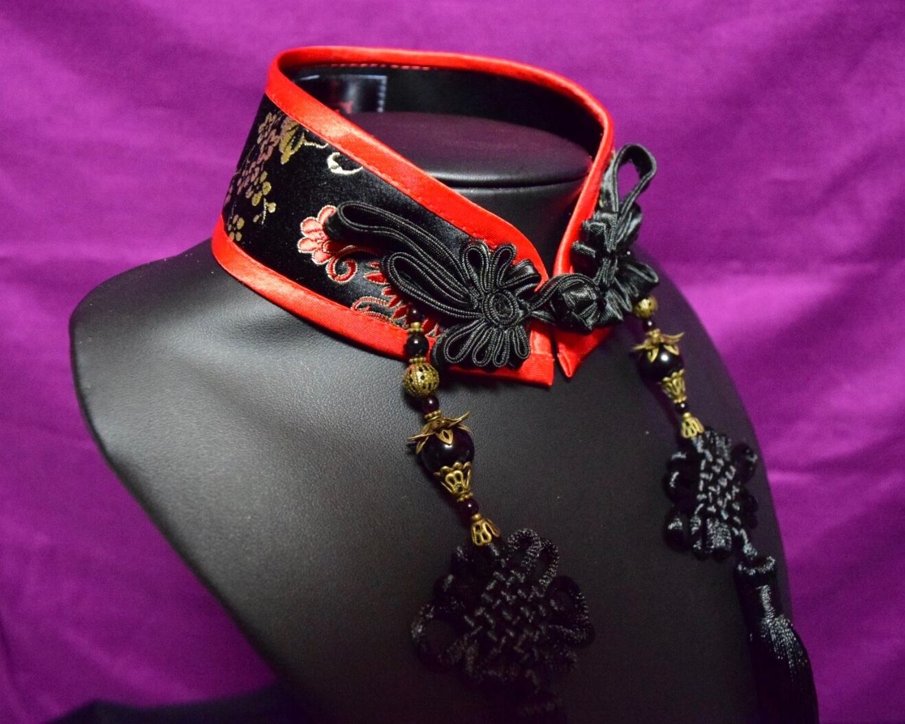 中華襟チョーカー(黒)Sサイズ[AR-SC033]