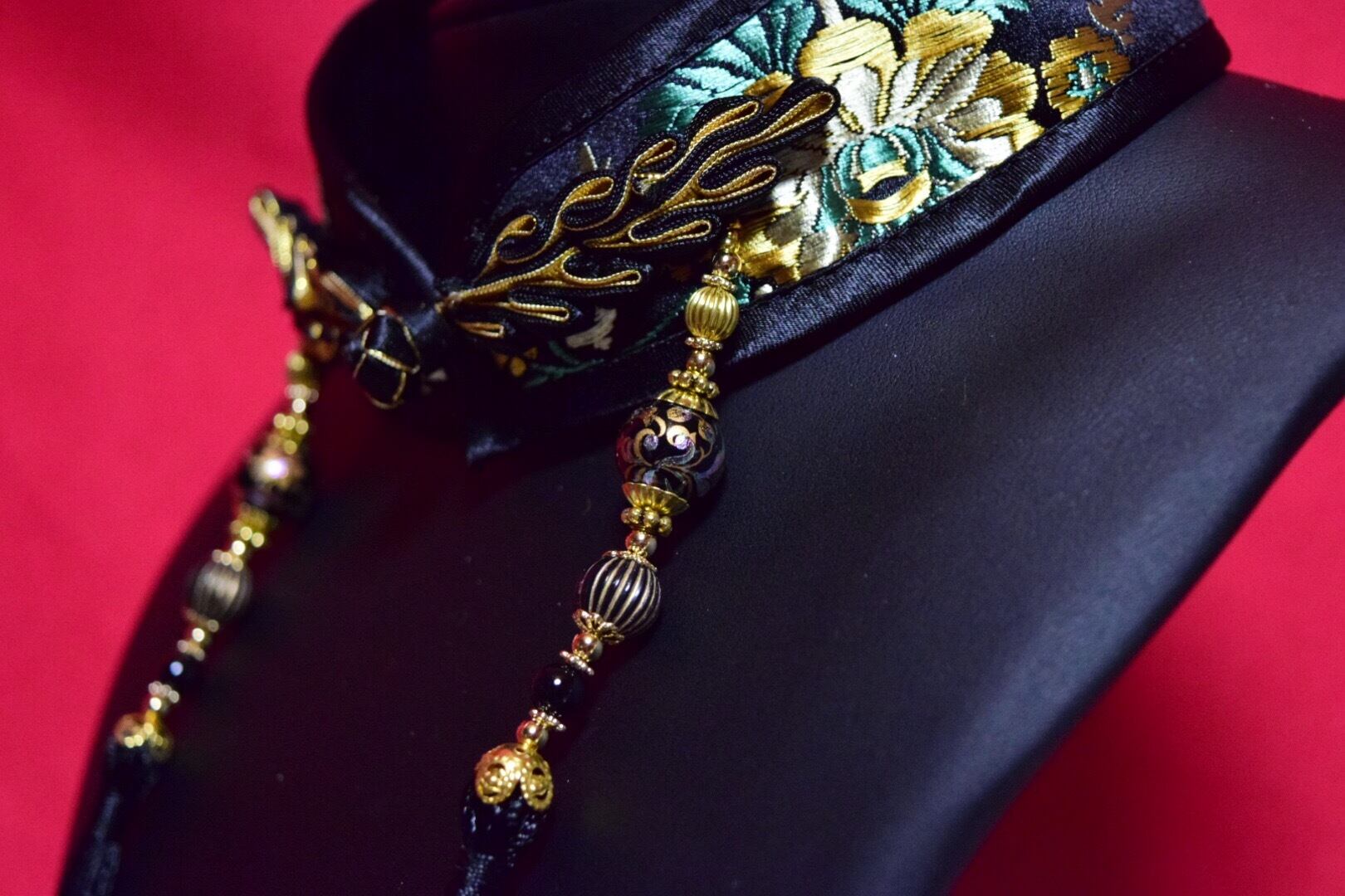 中華襟チョーカー(黒)Mサイズ[AR-SC038]