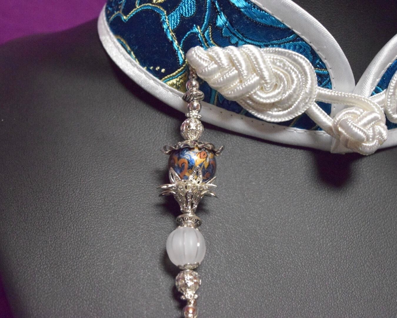 装飾:銀の中華装飾パーツと白の長い房飾り