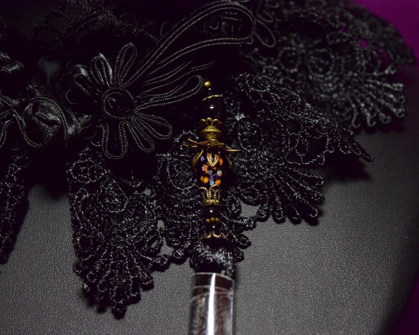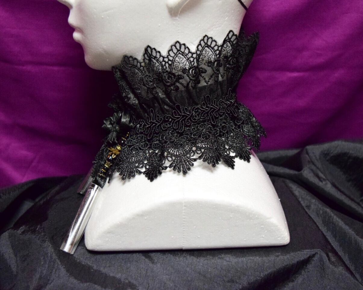中華襟レースチョーカー(黒)Sサイズ[AR-LC007]
