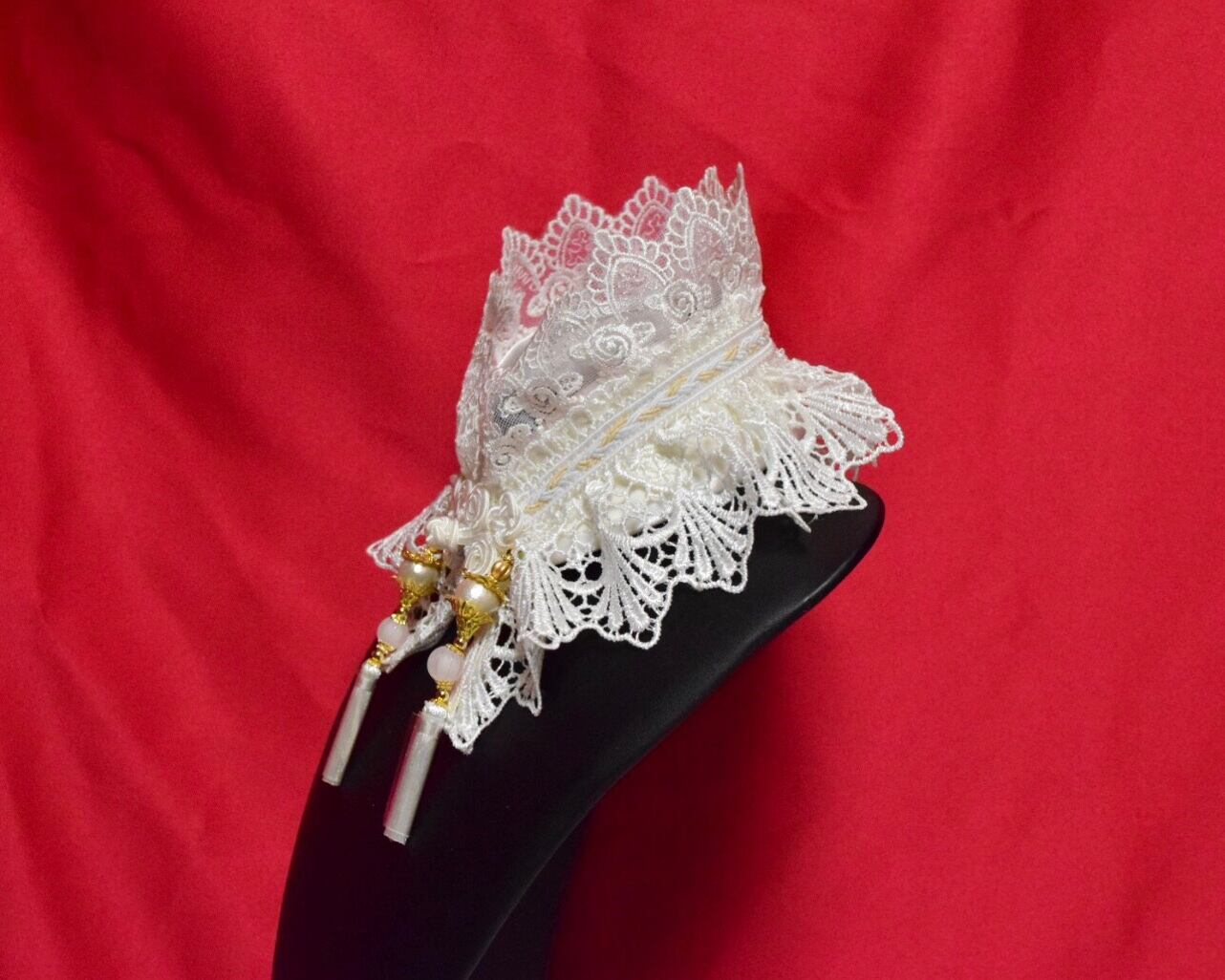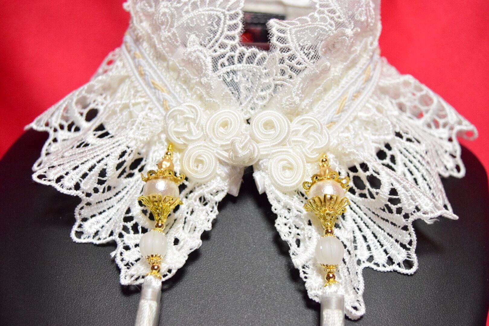 中華襟レースチョーカー(白)Sサイズ[AR-LC010]