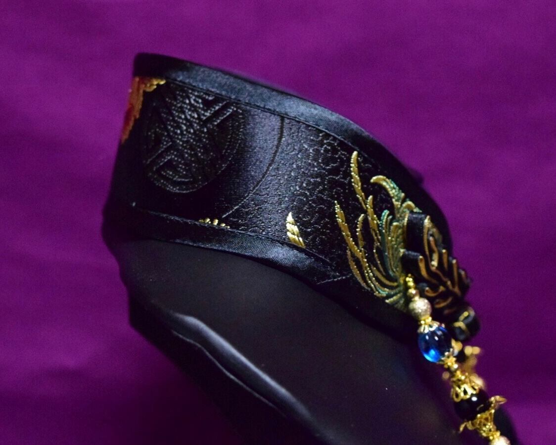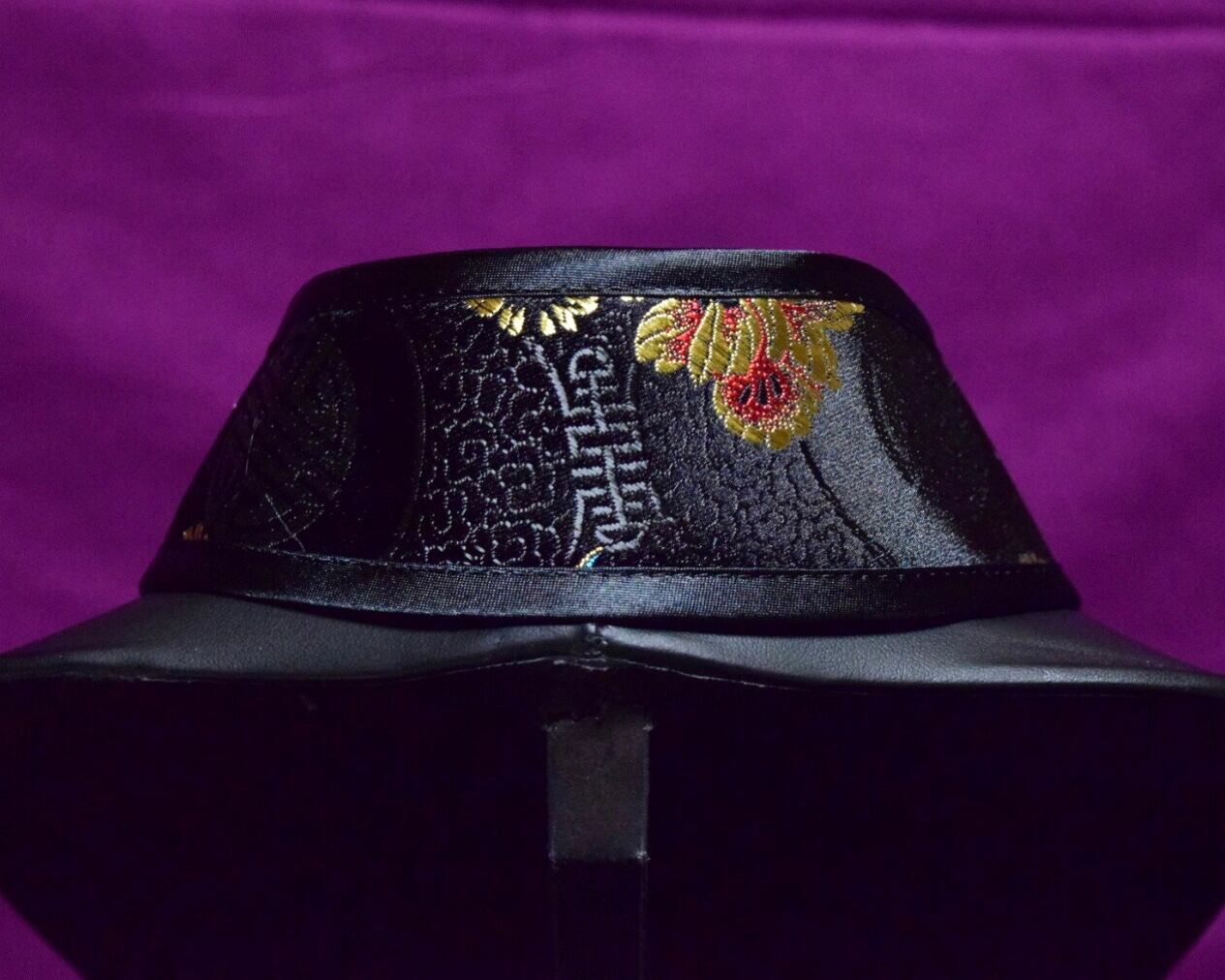 生地:黒地に緑、青と金の華の模様と中華紋様のチャイナブロケード