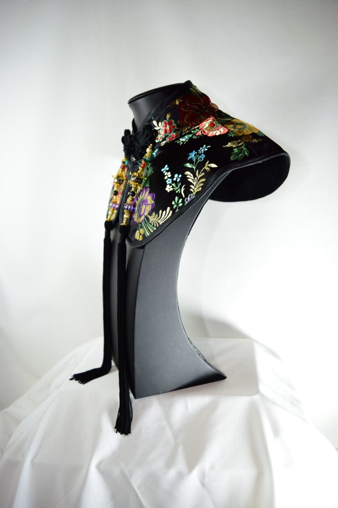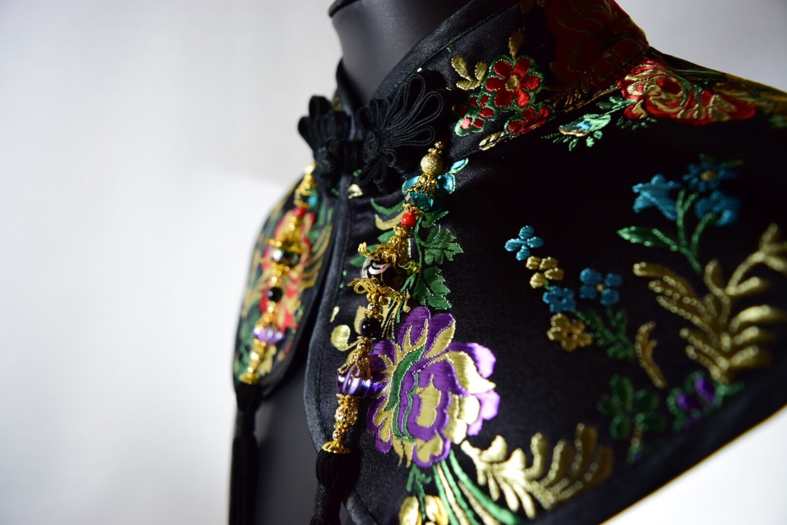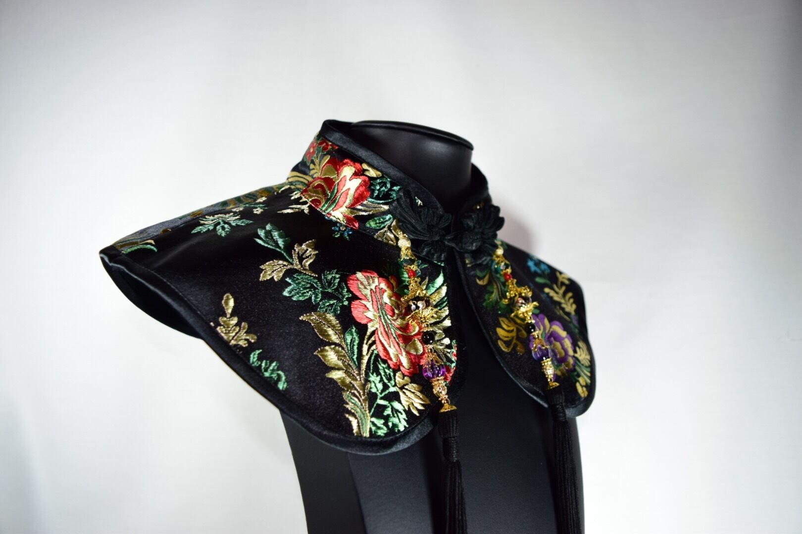 襟元にチャイナカラーと装飾をプラスできる付け襟飾り