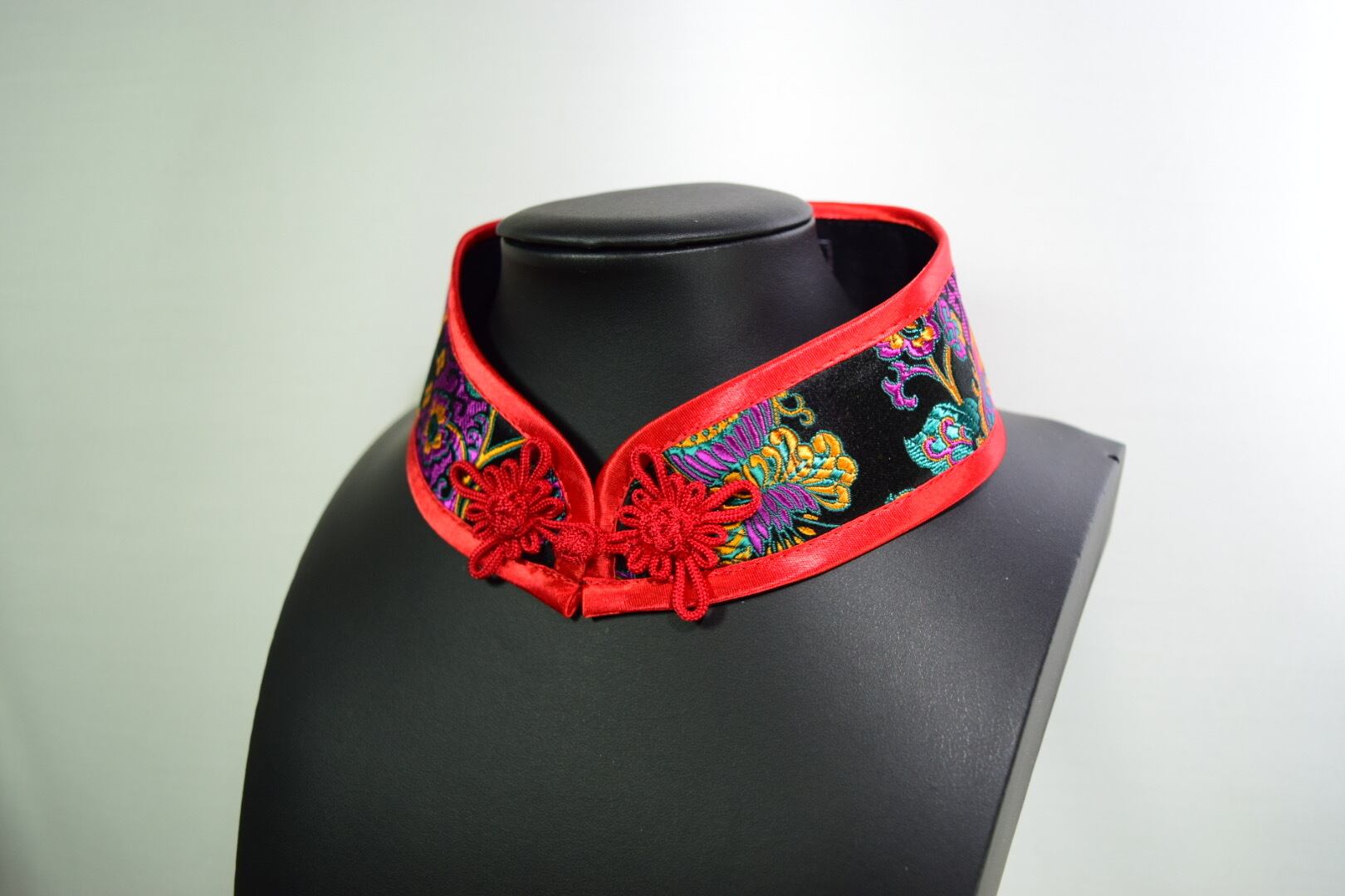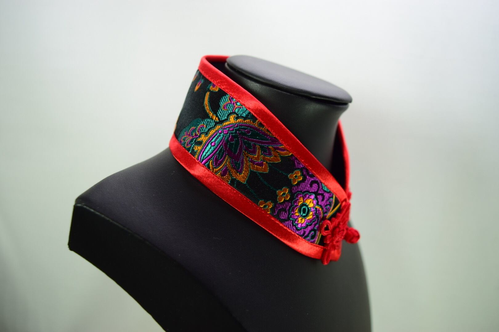 中華襟チョーカー(黒極彩華)Mサイズ[AR-SC076]