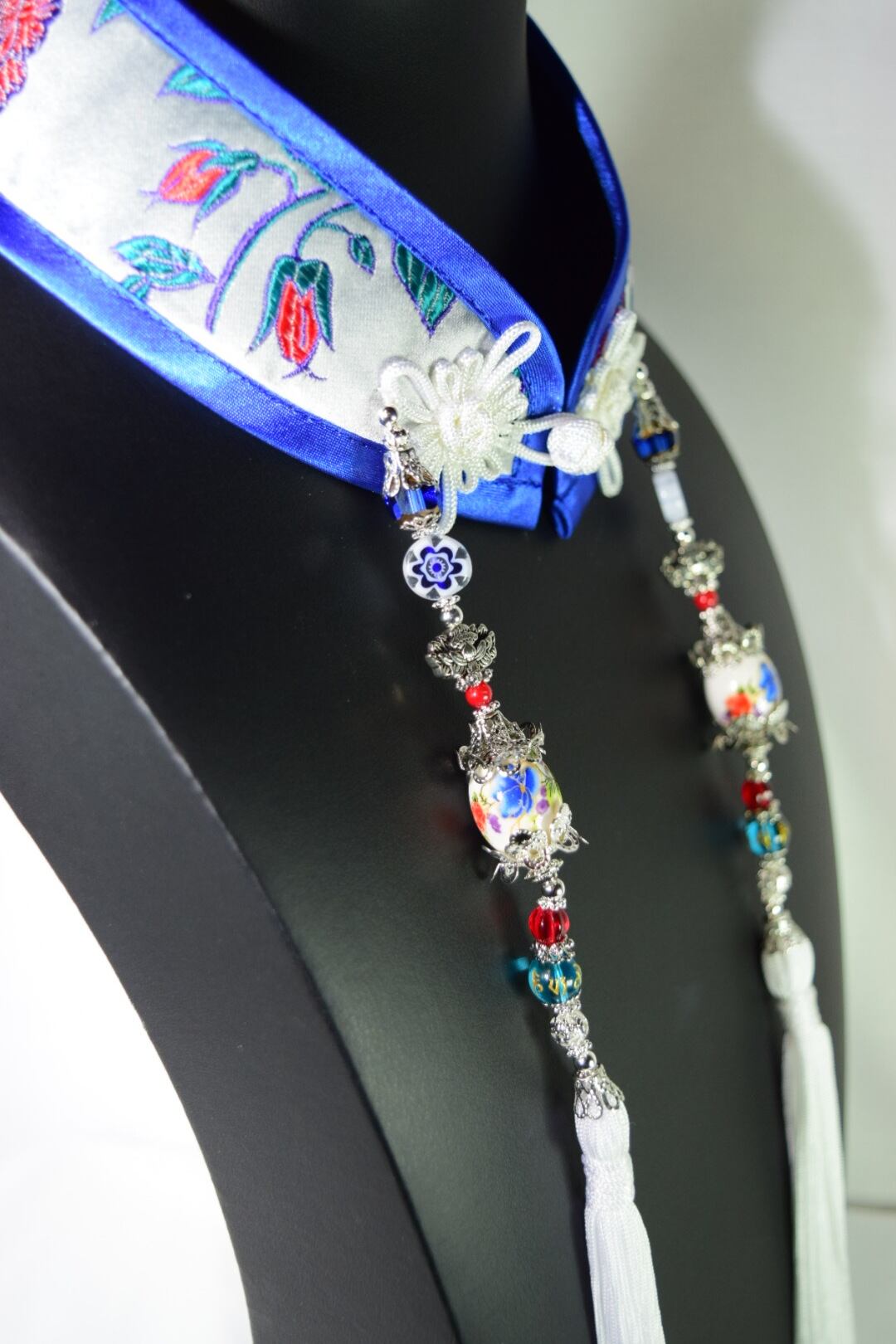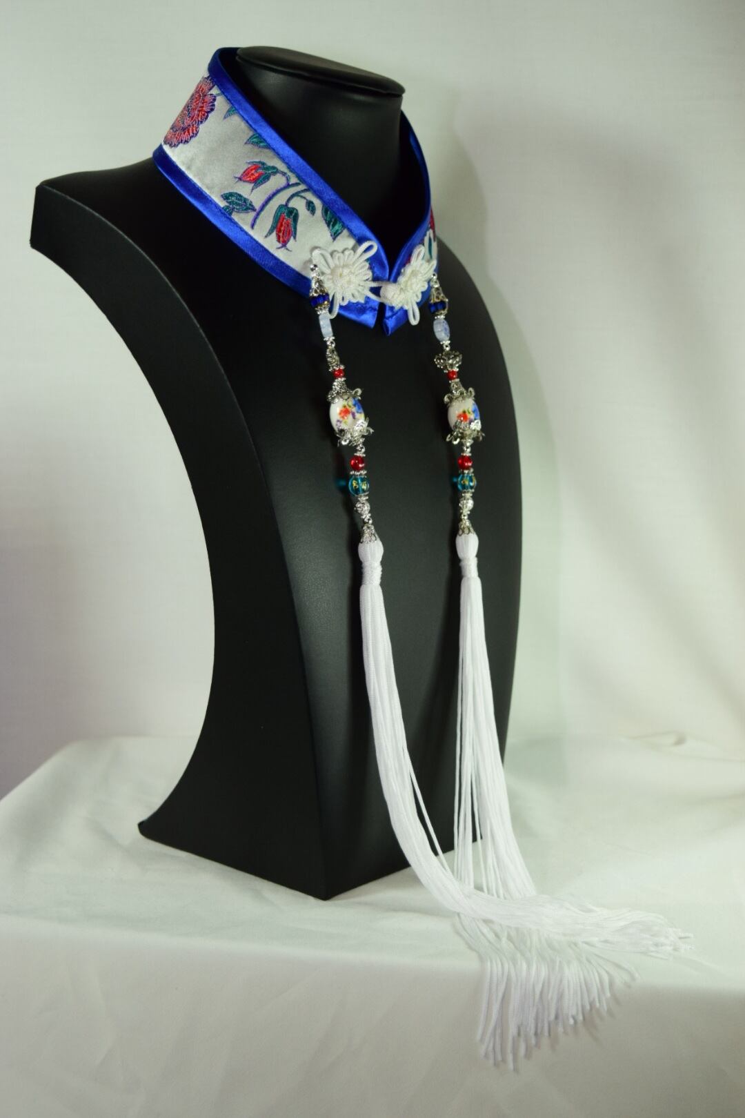 中華襟チョーカー(白磁赤華)Mサイズ[AR-SC078]