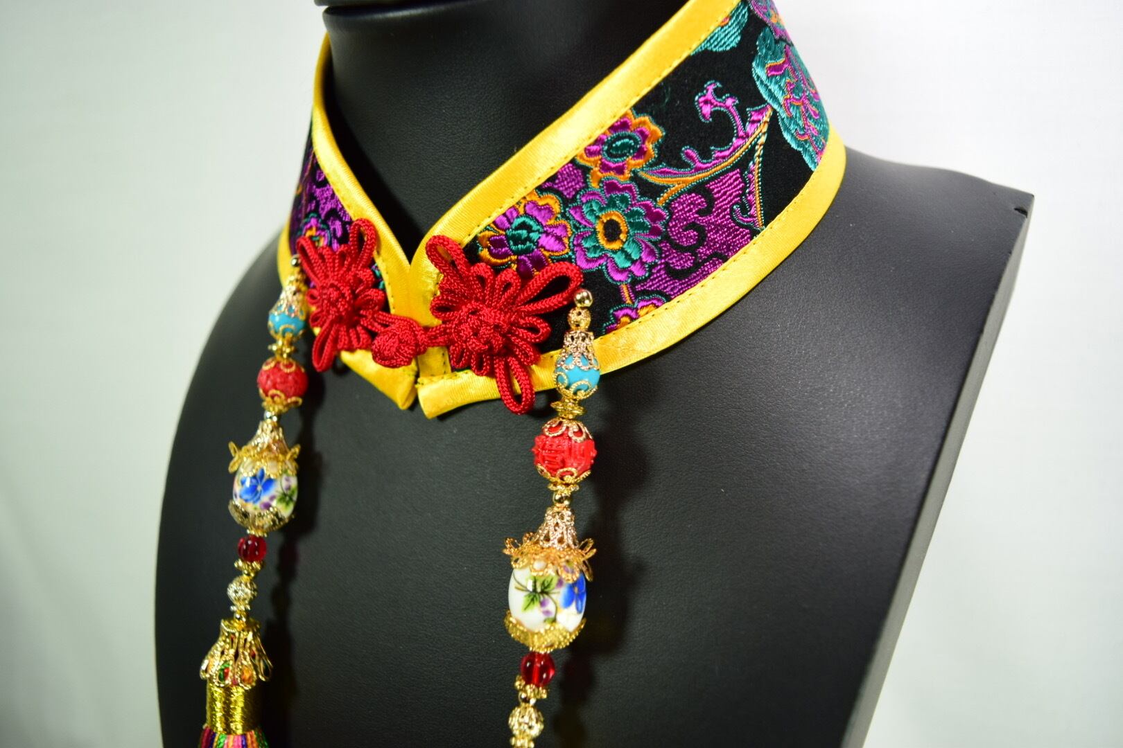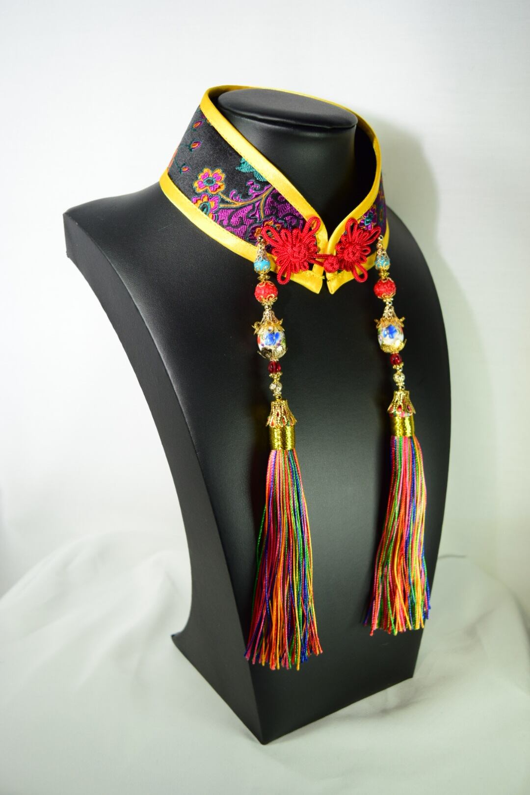 中華襟チョーカー(黒極楽華)Sサイズ[AR-SC081]