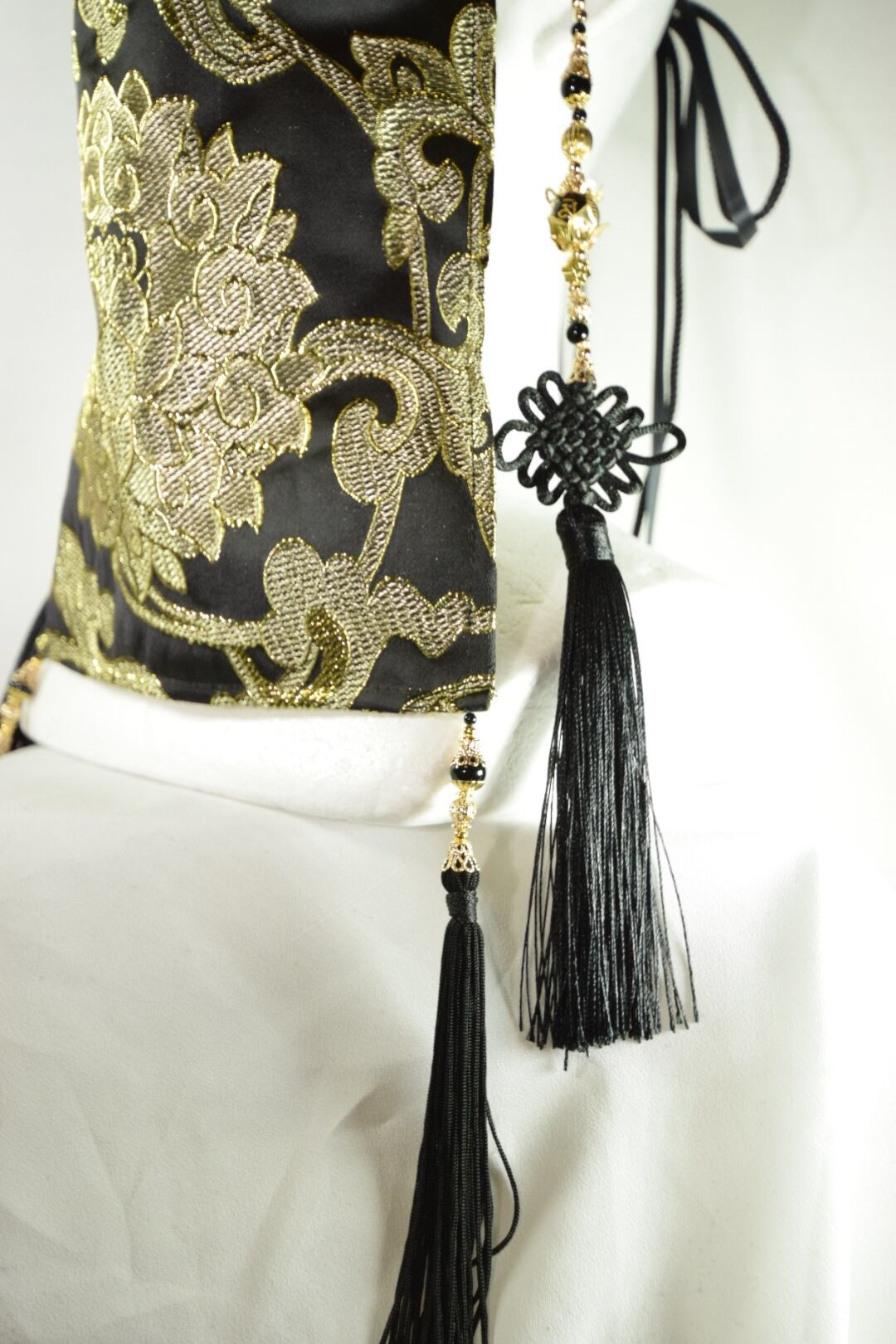 横 装飾:黒に金の梵字紋様の石と金色のパーツ黒の結び飾りの房