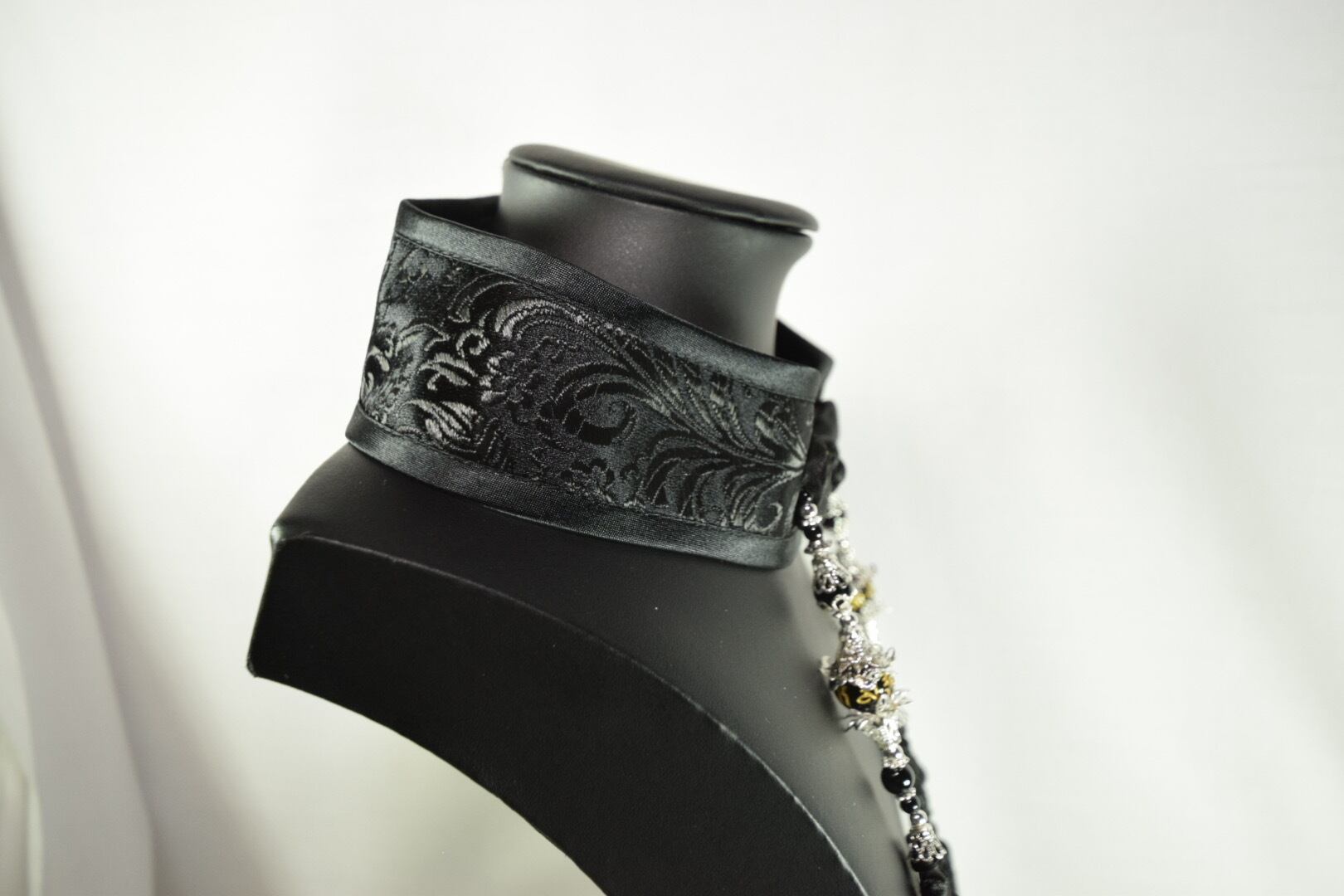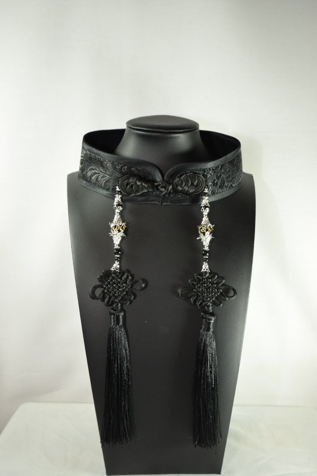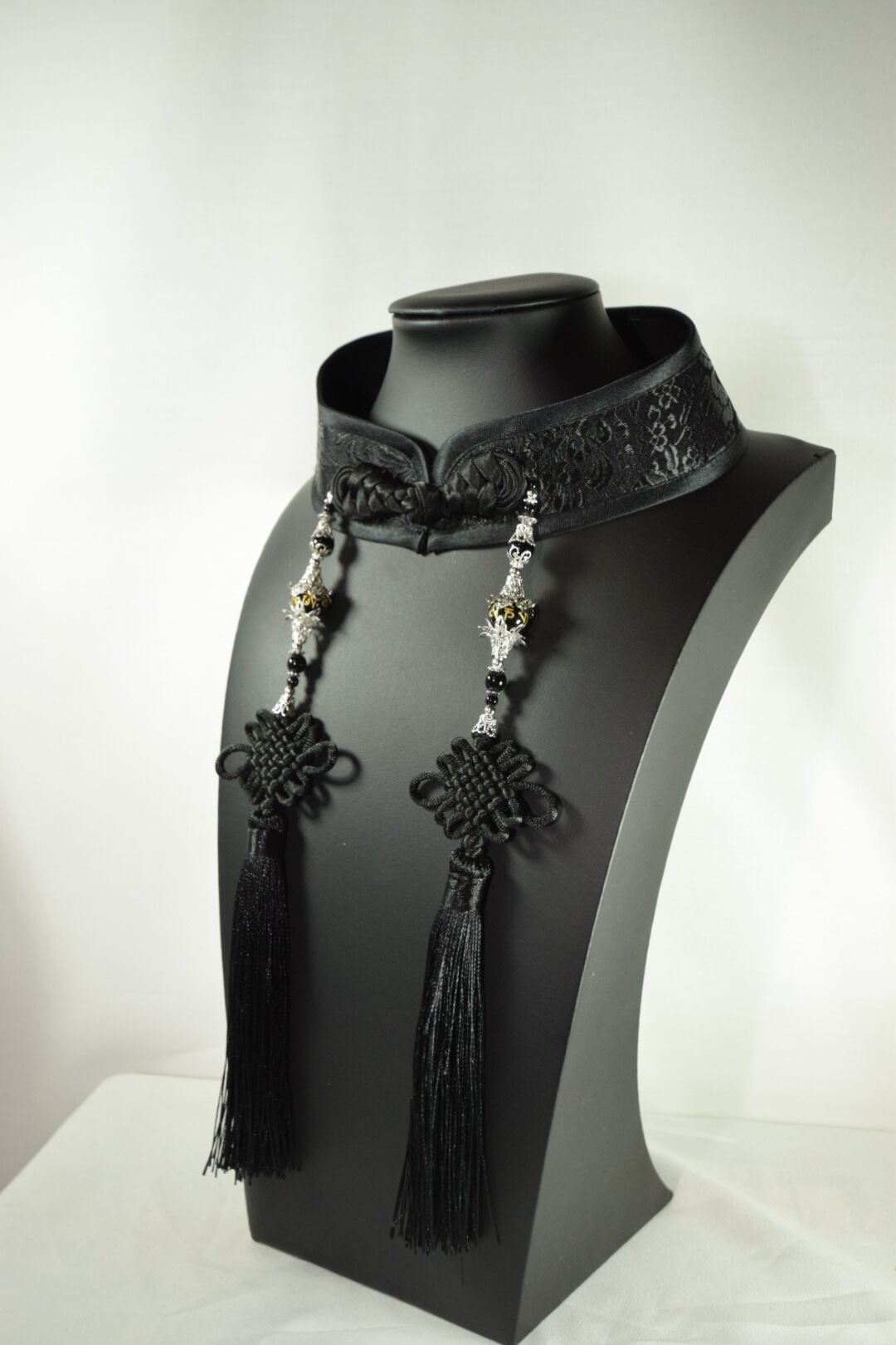 中華襟チョーカー(黒牡丹)Lサイズ[AR-SC088]