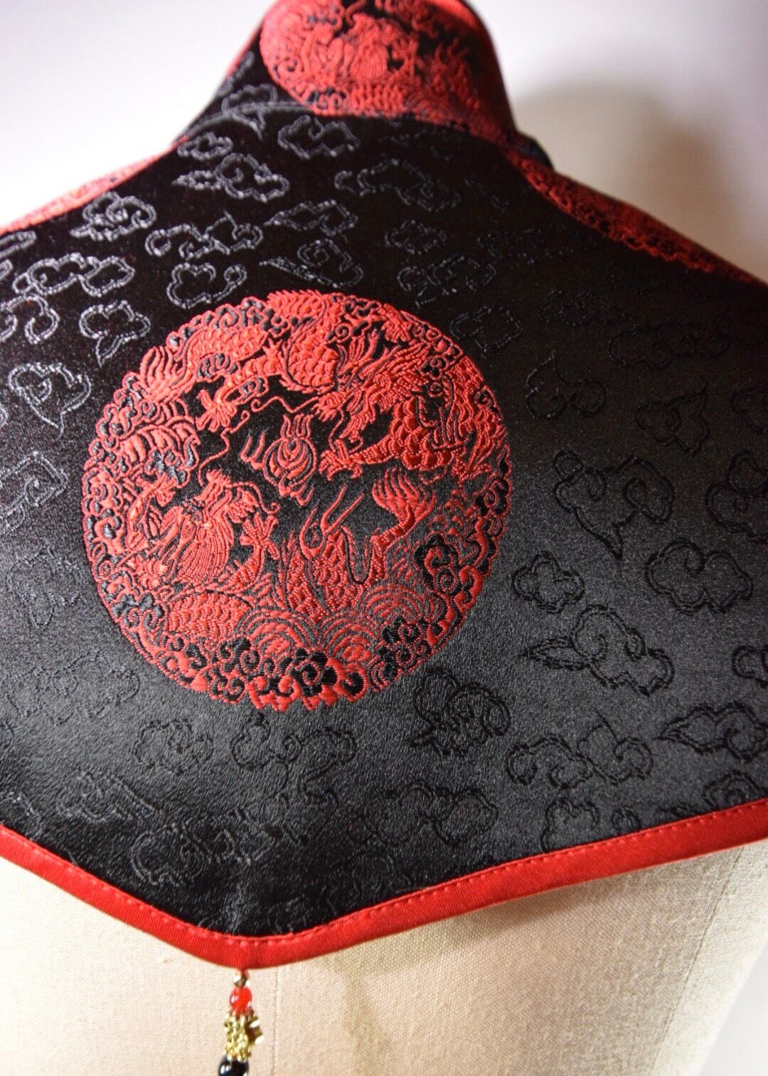 中華付け襟(黒雲×赤紋)[AR-DC042]
