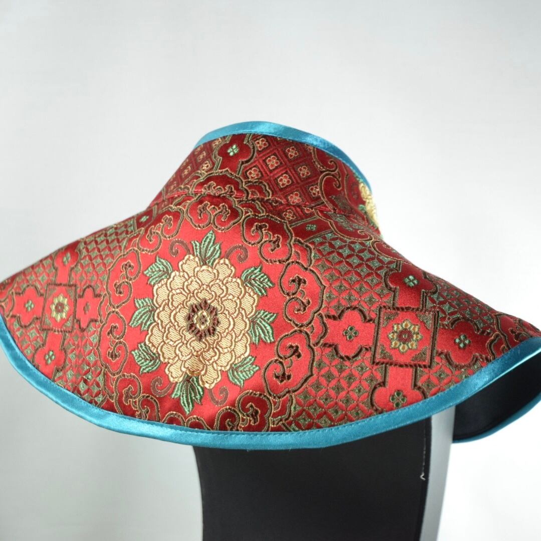 生地:朱赤の生地に金の蓮模様の幾何学チャイナ生地