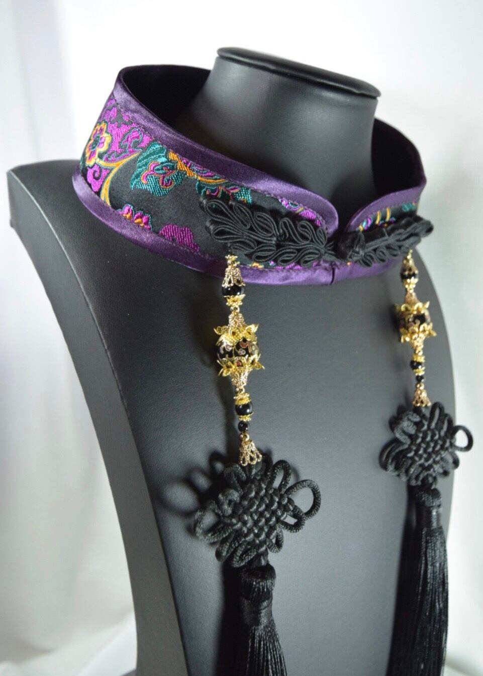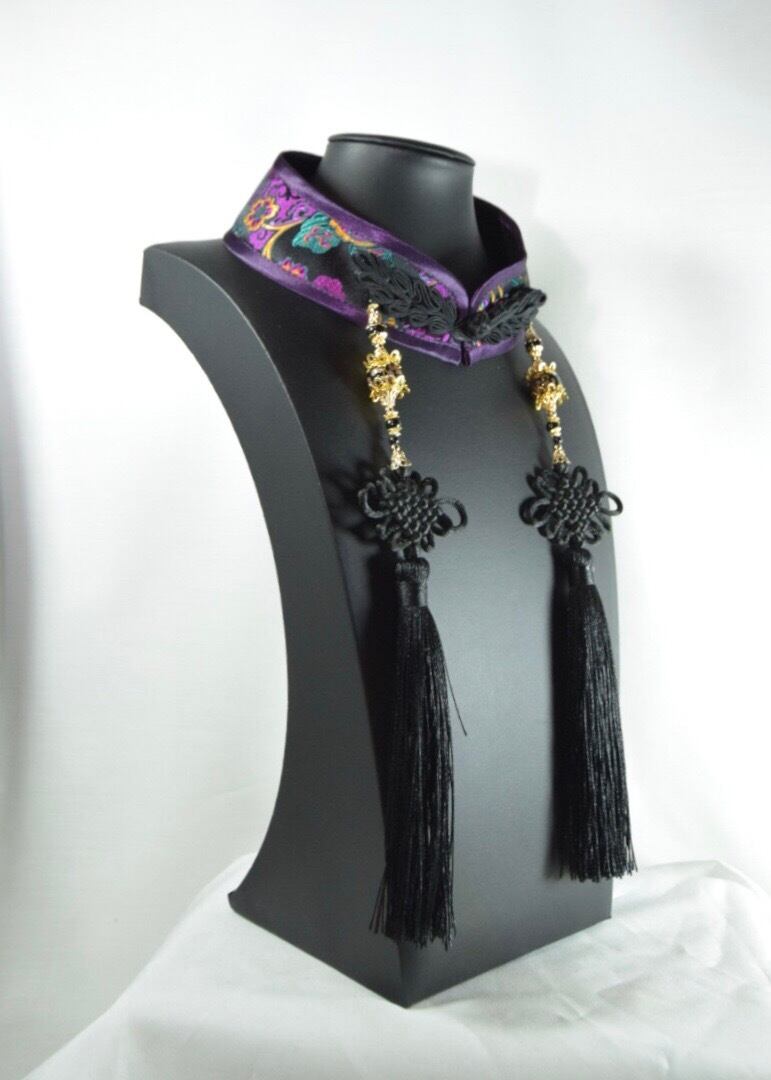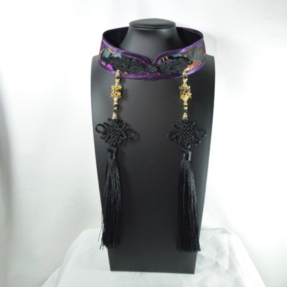 中華襟チョーカー(黒極彩華)Lサイズ[AR-SC097]