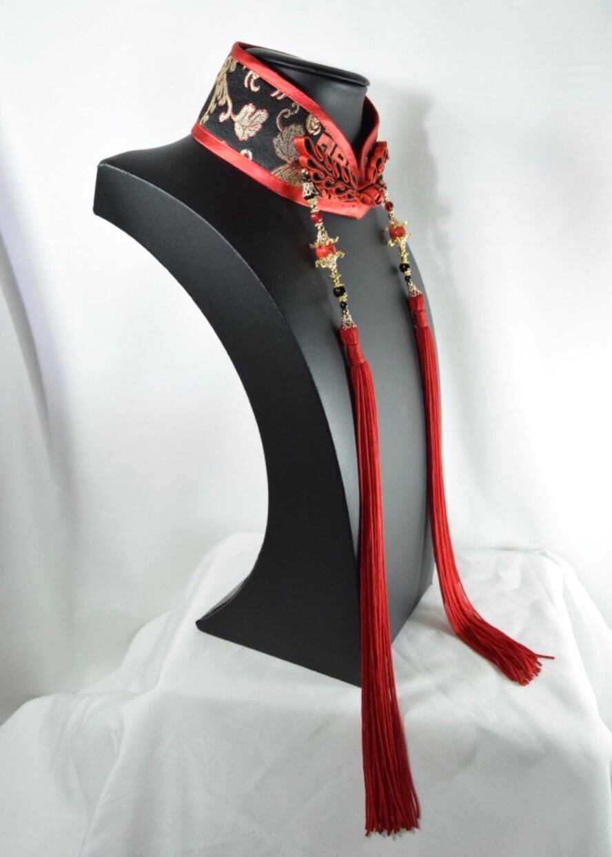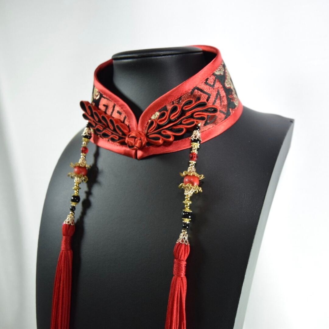 中華襟チョーカー(赤紋)Sサイズ[AR-SC091]