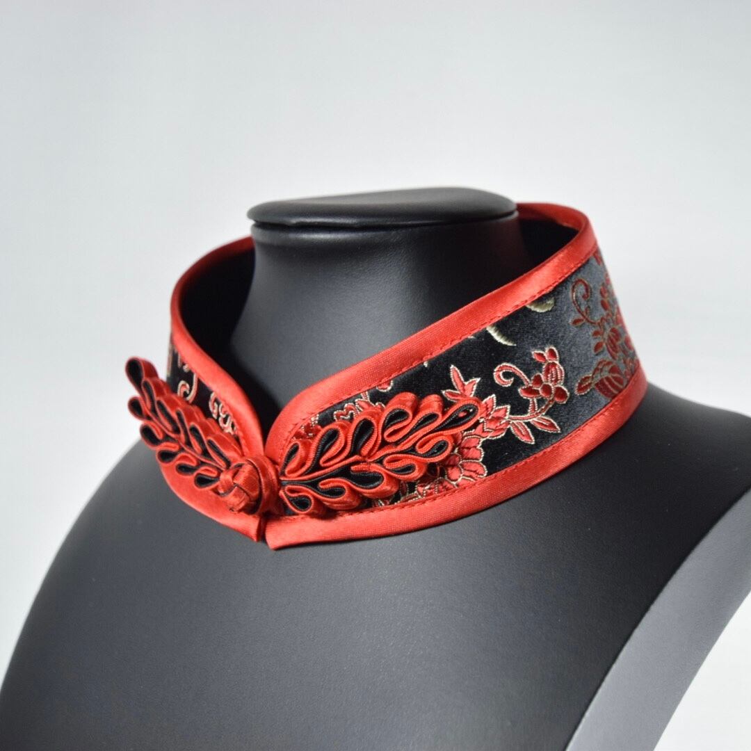 中華襟チョーカー(赤花)Mサイズ[AR-SC112]