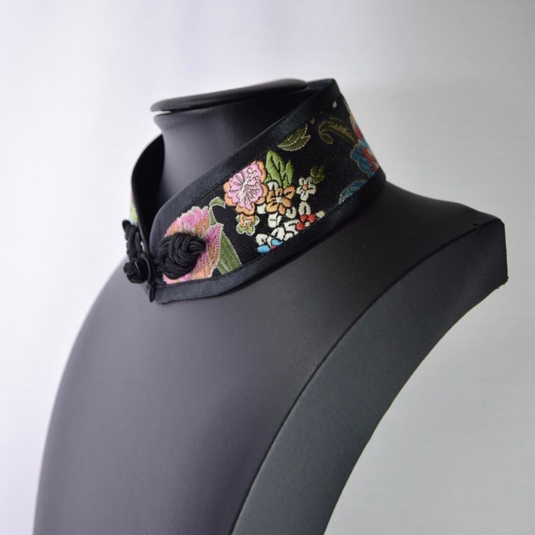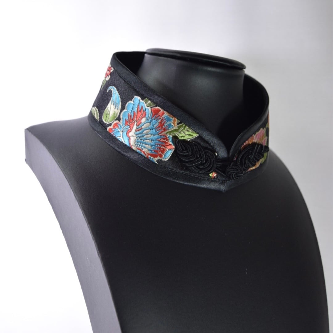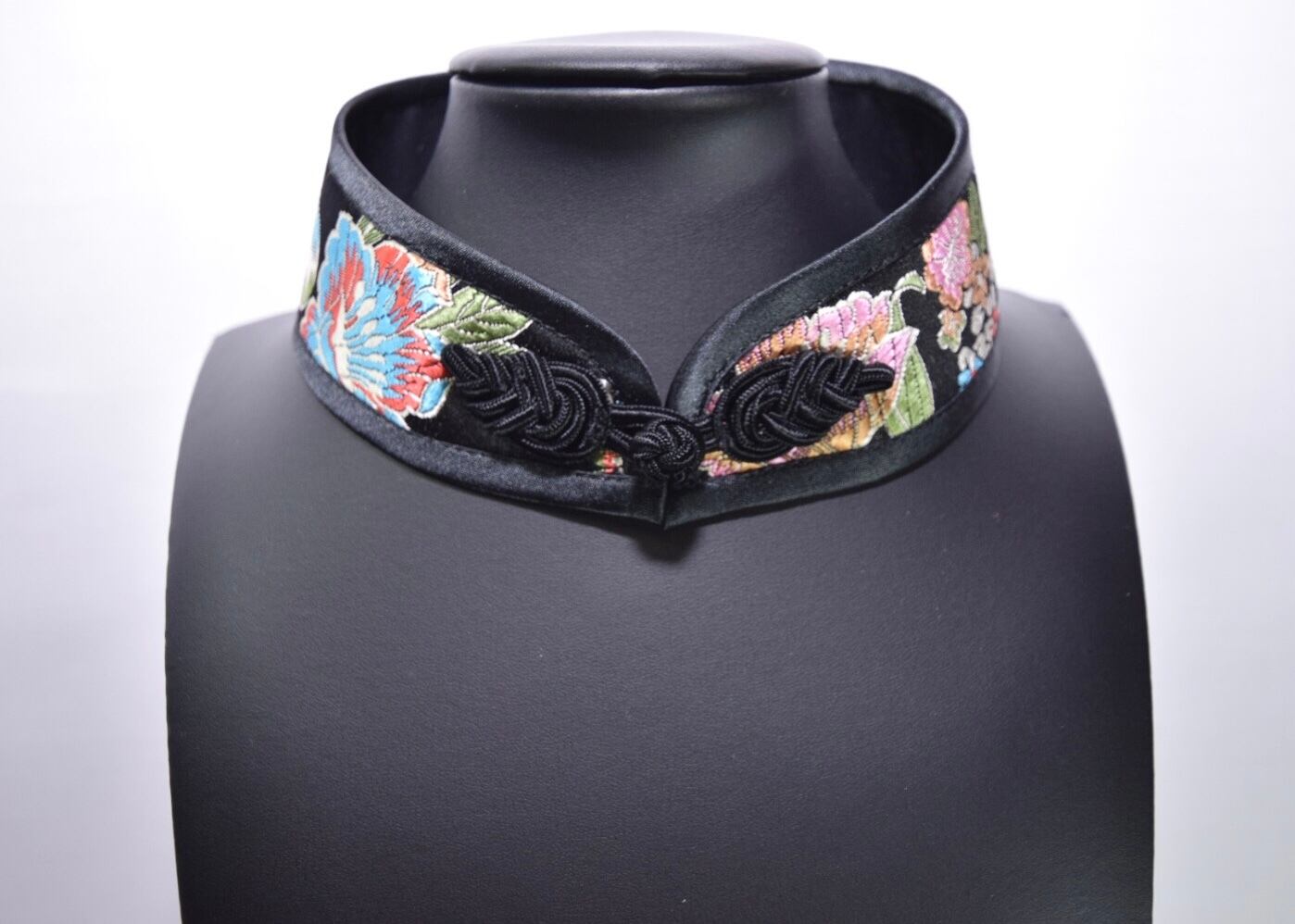 中華襟チョーカー(黒極彩華)Mサイズ[AR-SC113]