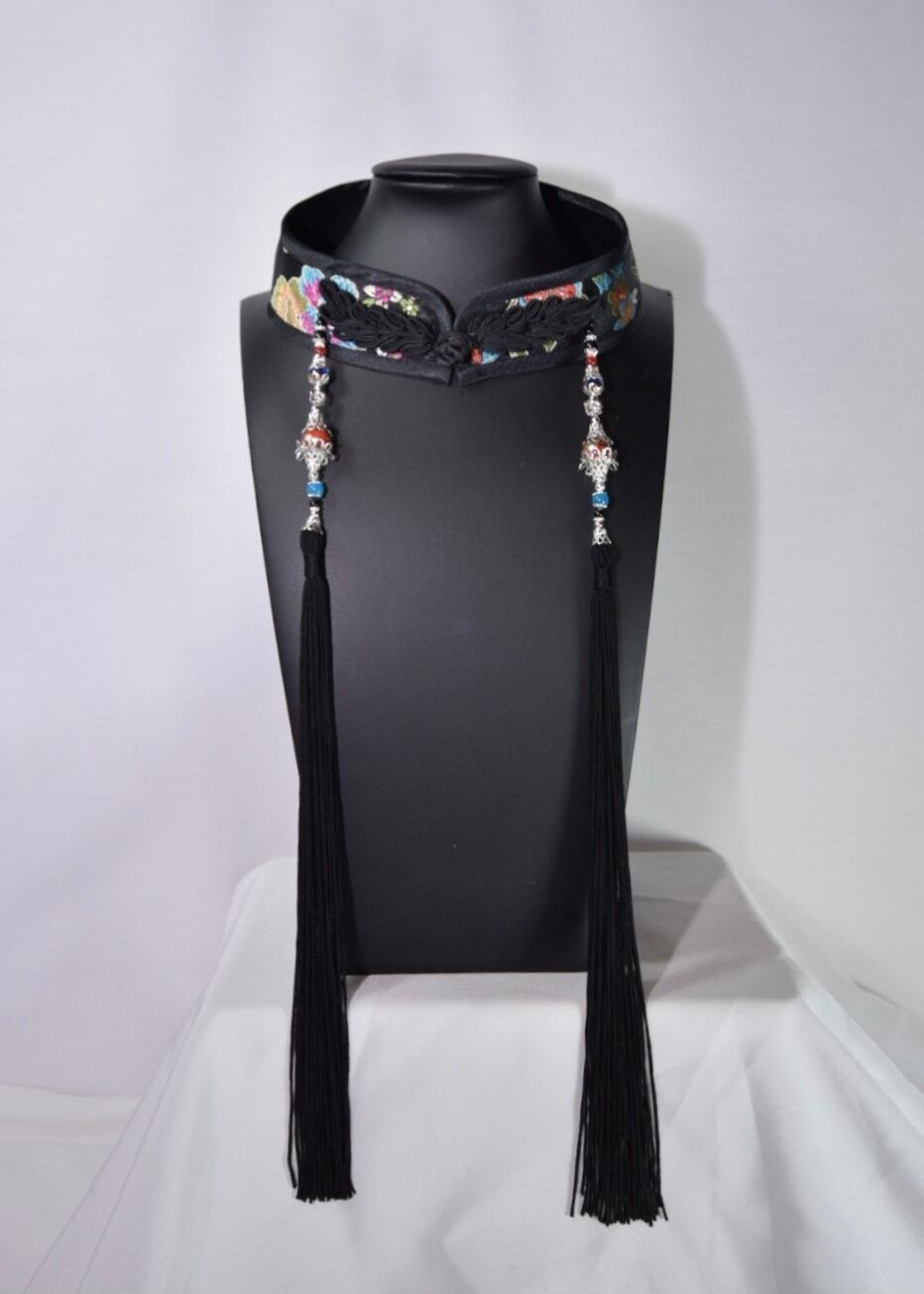 中華襟チョーカー(黒極彩華)Lサイズ[AR-SC118]