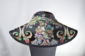 生地:黒地に鮮やかなピンク、橙、紫、水色、緑の花紋様
