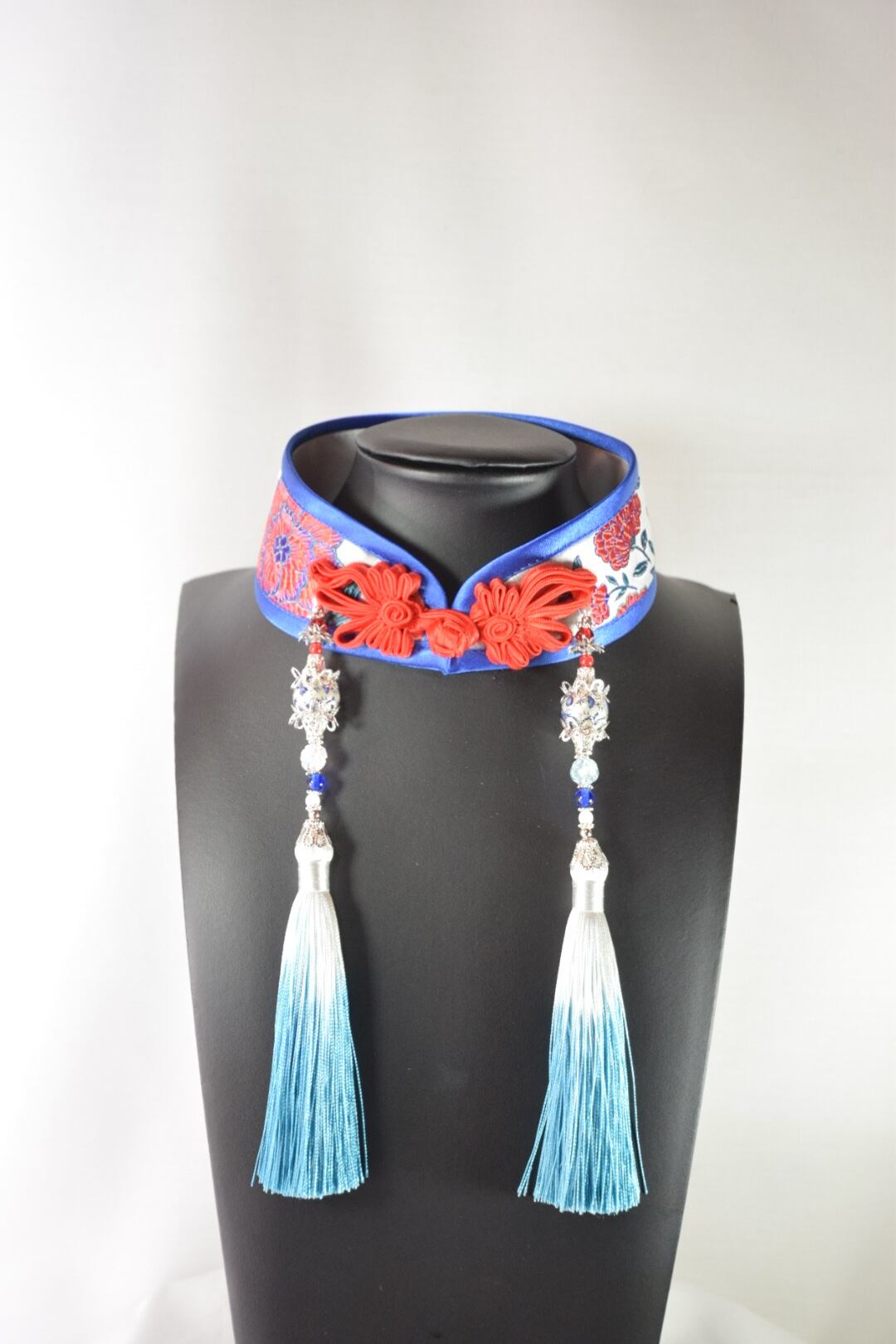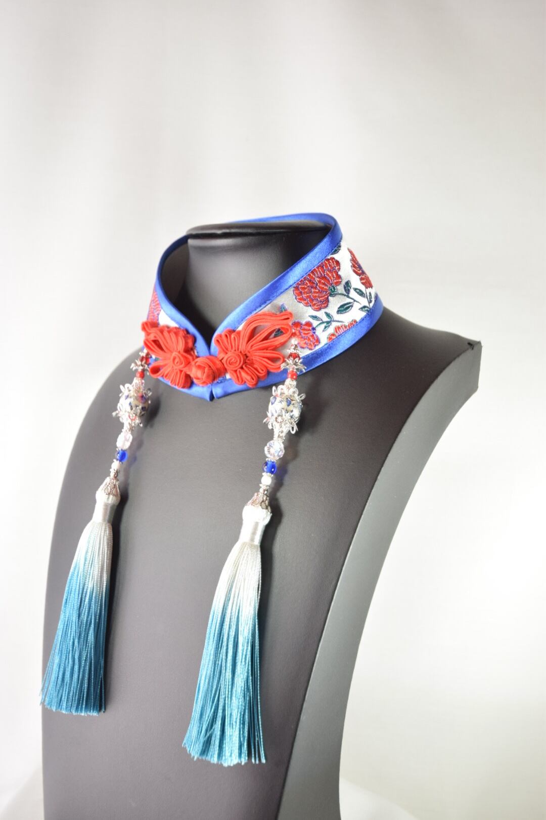 中華襟チョーカー(白磁赤華)Sサイズ[AR-SC125]